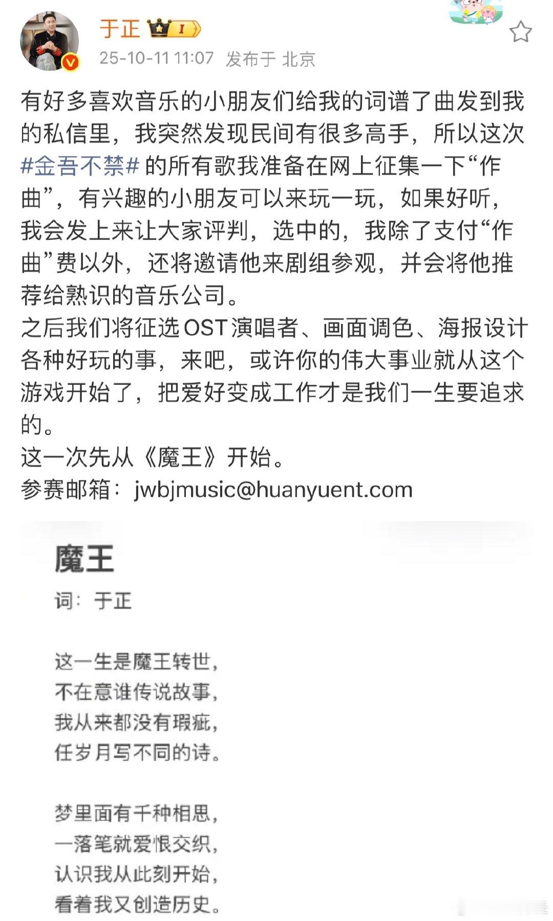 于正为金吾不禁征集作曲于正为金吾不禁的所有歌征集作曲于正为《金吾不禁》征集作曲