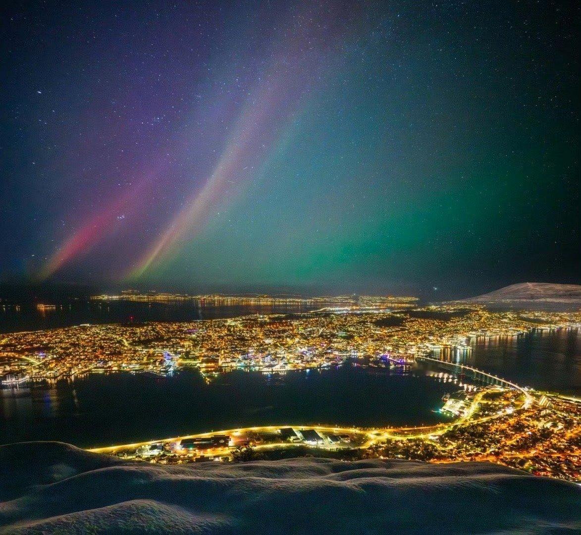 昨天挪威塞尼亚的精彩继续,大家又是美片多多!今天团队返回特罗姆瑟,从高点俯拍北极圈最大城市夜景。