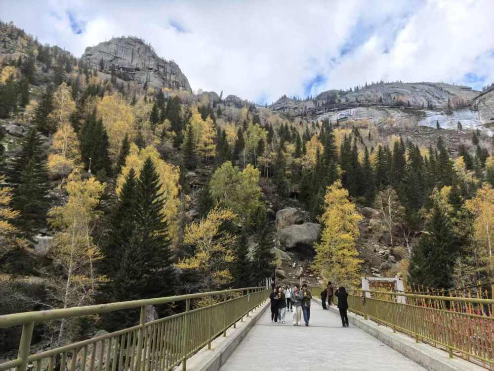 10月2日,游客在新疆可可托海景区赏秋。新华社记者蔡国栋