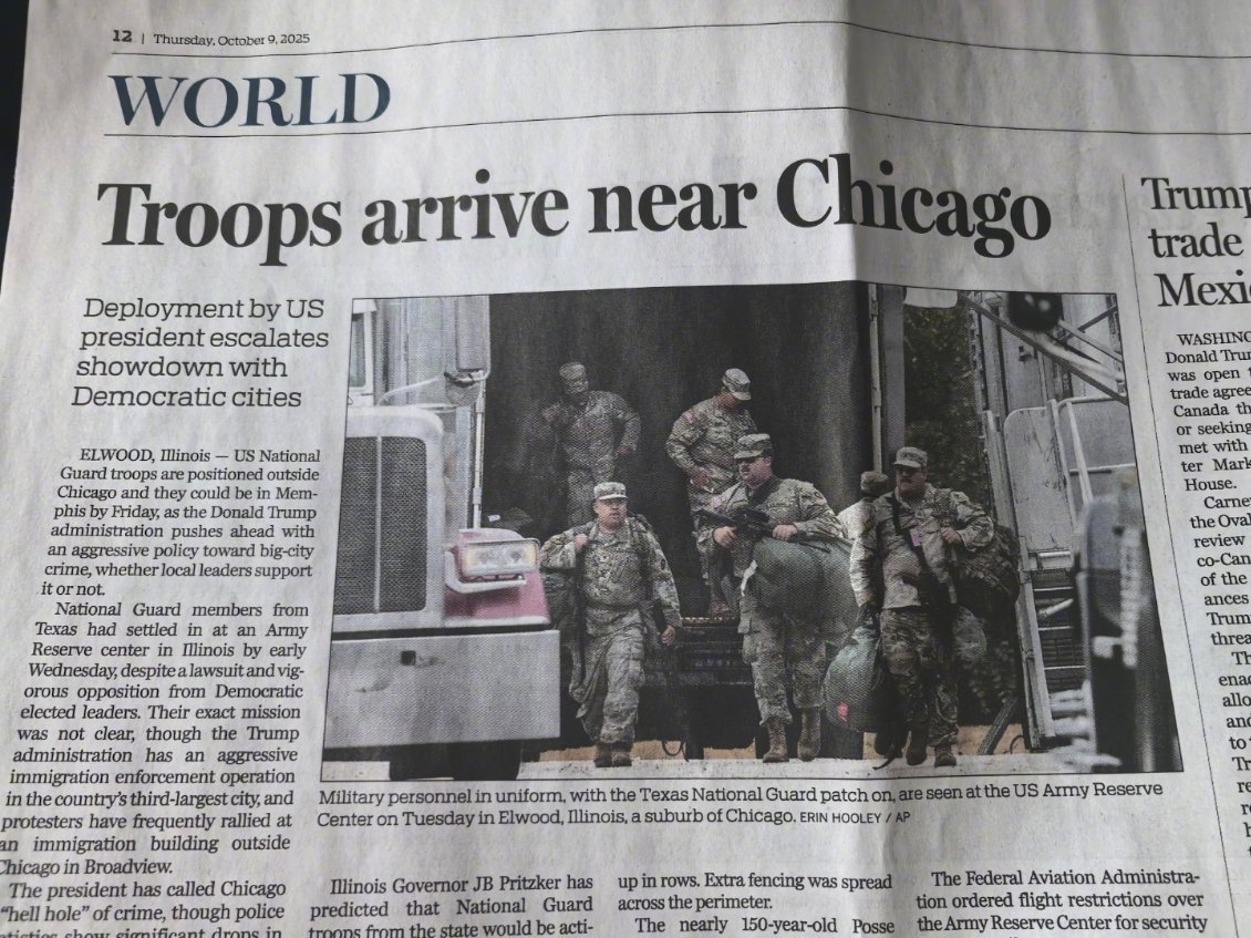 飞机上看中国日报英文版耗时间,特朗普往芝加哥派兵维稳,咋国内不安稳了?