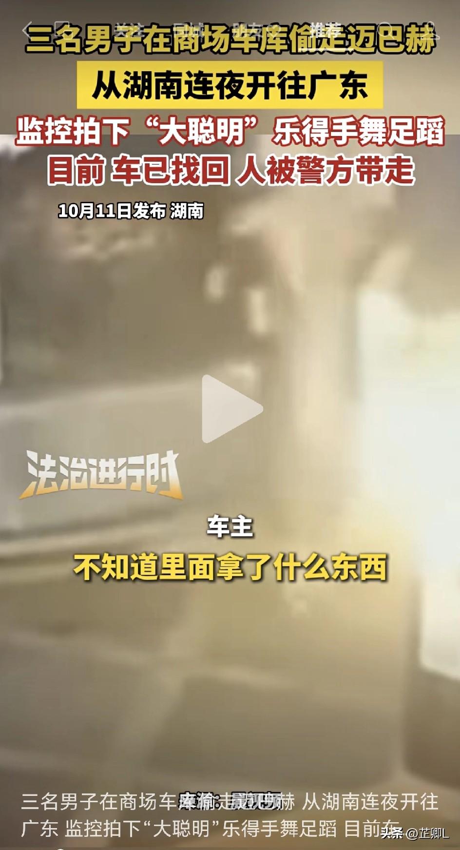 史上最狂小偷?”盗走百万迈巴赫,三男子停车场兴奋“蹦迪”全记录,短短24小时,就在派出所“C位出道”! 真是三个大聪明! 10月9日,湖南株洲,3名男子在商场的地下停车场,解锁了一辆迈巴赫。 监控下,清清楚楚的拍到,三个人解锁车辆后高兴的手舞足蹈,用网友的话来讲,就是像中了百万彩票! 三人连夜驾驶偷来的迈巴赫,逃往广东清远! 10月10日上午,从被盗到被找回,不到24小时,三名大聪明盗匪就喜提三副银手镯,以及暂未知的无数岁月的免费三餐。 这个年代怎么还会有如此“聪明”的大聪明呢? 无处不在的监控,车辆的GPS定位追踪功能,真不知道他们是真不懂还是真傻,他们偷的哪是豪车,分明就是炸弹!是能把他们炸进监狱的威力巨大的炸弹! 别说是价值几百万,甚至上千万的迈巴赫,就是我们家那开了七、八年的十几万的车子都有定位系统。 每次孩子开车出门,我们不放心时,就会定时查看查看监控,看看车子在哪里。 真是无知者无畏啊!但凡多花点时间和精力多了解一点社会,多了解一点现在车辆的配置,都不会去干这种百分百被抓的蠢事! 难道是在社会上打工吃不饱饭,自己才想出了这么个“好办法”,给自己找了个免费吃饭睡觉的地方? 行吧,尊重他人命运,由他们去吧。 信息来源于法治进行时,侵联删!