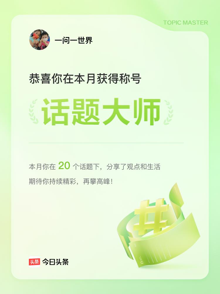 头条的话题总给人一种一言难尽的感觉。 热门的太简单,回答显不出来什么水平。 一些推荐的,有深度,但没有人关注啊。 我还是坚持在我的垂直赛道找话题。 相信坚持总有人能看到, 也会因为观点遇到很多志同道合的人。 这是分享话题观点的意义。