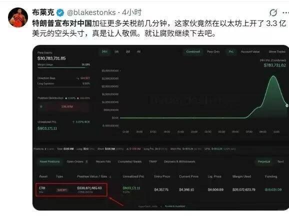 特朗普宣布对中国提高关税的30分钟前,一位巨鲸开设了大量杠杆空头仓位。在一天之内,这位巨鲸从加密货币市场崩盘中获利1.92亿美元。 这一切是不是特朗普家族在暗中交易? 要说特朗普家族没在这事儿里搞鬼,打死我都不信!特朗普要宣布对中国提高关税这么大的事儿,那可是能让整个市场抖三抖的消息,尤其是加密货币这种风吹草动就暴跌的玩意儿。 偏就在他张嘴说话前 30 分钟,有个巨鲸突然砸重金开了一大堆空仓,说白了就是赌加密货币要跌,结果一天就赚了 1.92 亿美元。这哪是巧合?这分明是拿着内部消息提前布局,妥妥的暗箱操作! 先说说特朗普家族跟加密货币那点扯不清的关系,他们早就把这玩意儿当成摇钱树了。你知道吗?特朗普家自己搞了个叫 WLFI 的加密货币,光上市那天账面财富就涨了 50 亿美元,比他们攒了几十年的房地产还值钱。 他那三个儿子都是联合创始人,特朗普自己挂着 "荣誉联合创始人" 的名儿,一家子攥着近四分之一的代币。 更离谱的是,他们还搞了个循环交易的猫腻,买方卖方其实是一伙人,就这么空手套白狼赚了 5 亿美元,连前金融监管官员都直说这事儿有利益冲突。这家人对加密货币的玩法门儿清,怎么可能放过关税消息这种能暴富的机会? 再看看美国政界这乌烟瘴气的内幕交易风气,特朗普身边的人就没少干这种事儿。司法部长邦迪在特朗普公布 "对等关税" 的当天,刚好把手里特朗普媒体科技集团的股票卖了,一下躲过了 13% 的暴跌,卖股票的时间点准得吓人。 交通部长达菲更绝,在特朗普宣布加关税前两天,一口气抛了三十家公司的股票,事后就甩锅给理财经理。 最有名的还得是前众议院议长佩洛西的丈夫,每次买股票都踩在政策点子上,买完特斯拉就出补贴政策,买完微软就来大订单,这哪是炒股,这就是拿着内部消息捡钱! 连美联储前副主席都敢在救市前一天偷偷买基金,可见这圈子里早就把内幕交易当家常便饭了。特朗普一家子浸在这种环境里,能比别人干净? 更关键的是,特朗普政府的消息根本藏不住,泄露是常事儿。之前白宫官员居然能把袭击也门的战争计划,错发到记者的群聊里,连武器、目标、时间这些机密都漏了出去。 特朗普自己还满不在乎,说袭击成功就行。连战争计划都能随便漏,提高关税这种提前几天就定好的政策,怎么可能守得住秘密? 搞不好就是特朗普跟家里人递个话,"明天要宣布加关税了,加密货币肯定跌",他那几个儿子立马就安排人开空仓,这操作简直顺理成章。 有人可能会说,没证据证明那个巨鲸就是特朗普家的人啊。可加密货币这东西本来就匿名,巨鲸的钱包地址根本查不出真实身份,这恰恰给他们提供了掩护。 特朗普家族通过加密货币已经赚了多少?光 WLFI 项目就有 50 亿估值,加上其他挖矿、代币交易,特朗普个人就赚了 24 亿美元。 他们办个加密晚宴,靠卖代币门票就赚了 3 亿多手续费,来的还都是孙宇晨这种投了 7500 万美元的加密大佬。 这些人跟特朗普家族绑在一条船上,就算巨鲸不是特朗普家直接操作的,也肯定是他们的亲信或者合作方,用内幕消息分一杯羹罢了。 再看市场反应,特朗普的关税政策从来都是加密货币的 "黑天鹅"。之前他一提要搞 "关税 B 计划",比特币就跌了 2%,以太坊跌超 4%,一天之内 20 多万人爆仓,全网亏了 6.76 亿美元。 这说明关税消息对加密市场的冲击力早就被验证过了,特朗普家族不可能不知道。既然知道,又刚好在消息出来前有人精准开空仓获利,这事儿要是没他们掺和,那太阳都得从西边出来。 美国不是有个《停止利用国会信息交易法案》吗?听着挺吓人,其实就是个摆设,处罚轻得跟挠痒痒似的。 之前有人想提案禁止议员及其家人炒股,结果民主党和共和党全反对,佩洛西还说 "议员有权买卖股票"。没有规矩管着,特朗普家族这种唯利是图的性子,怎么可能放过送上门的钱?他们连 "特殊交易" 这种擦边球都敢公开做,私下里用关税消息搞加密交易,根本不算事儿。 说到底,这 1.92 亿美元的获利,就是特朗普家族把政治权力当成赚钱工具的铁证。 他们一边拿着国家权力制定政策,一边靠着提前泄露消息在市场上捞钱,把公权当私产,把市场当赌场。那些说 "巧合" 的人,要么是没看清这家人的真面目,要么就是揣着明白装糊涂。 在美国这所谓的 "民主" 外衣下,早就藏着无数这样的利益输送,特朗普家族不过是把这种肮脏交易玩得更明目张胆罢了。这哪儿是什么市场奇迹,分明是权力变现的丑陋戏码,真当普通人都是傻子不成?