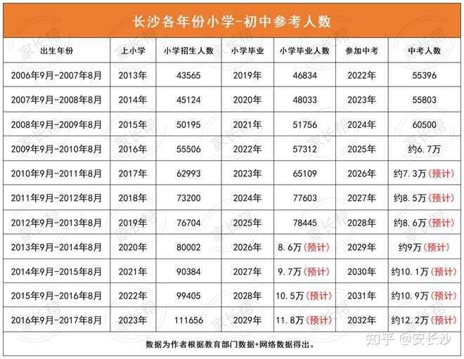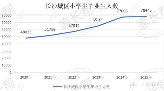 长沙哪个小学最好? 2025年长沙市小升初人数再创新高,未来四年,人数也将持续增长,派位的人越来越多,也意味着竞争会越来越激烈。 长沙小学毕业人数激增3万+ 根据官方公布的每年长沙城区小学毕业生人数(含外地回长),我们汇总了近6年来的数据,从折线图能够看出,长沙市小升初的人数正在持续增长。 其中,2024年毕业生人数较前一年增长了12494人,同比增长19.2%。2025年增速放缓,较前一年增长842人。 总体看,2020年到2025年,长沙市毕业生人数(含外地回长)共增长了30412人。 2010-2018年是一波生育高峰,今年升入初中的孩子大多是2012-2013年出生的孩子,根据之前长沙升入小学人数的推算,未来几年长沙小升初的人数还将持续增长,小升初入学顶峰将在2029年。 外地回长生持续增长 过去几年,长沙的常住人口和在长读书的外来务工子女持续增长,对于外来务工人员子女入学的政策逐渐放宽,吸引了更多追求优质教育的家庭来长就读初中。 2018年,在长沙市就读的外来务工子女约12.8万,到2023年增长至19.63万,2024年更是已经突破20万大关,达到21.83万。(数据 扩招的学校&新学校的铺开建设 接下来4年长沙小升初的人数仍会持续增加,名校派中率在逐渐降低。同样,官方也在想办法解决学位紧张,竞争激烈的问题,例如长郡双语、一中双语近几年来在逐步扩招,而部分学校则采取建设“一校两址”校区来解决这类问题,例如中雅、郡外等学校。 但是也有家长担心优秀师资被稀释的问题,事实上,除了扩招以外,各区也在不断扩大自身的教师团队。因此家长们不用过于担心。