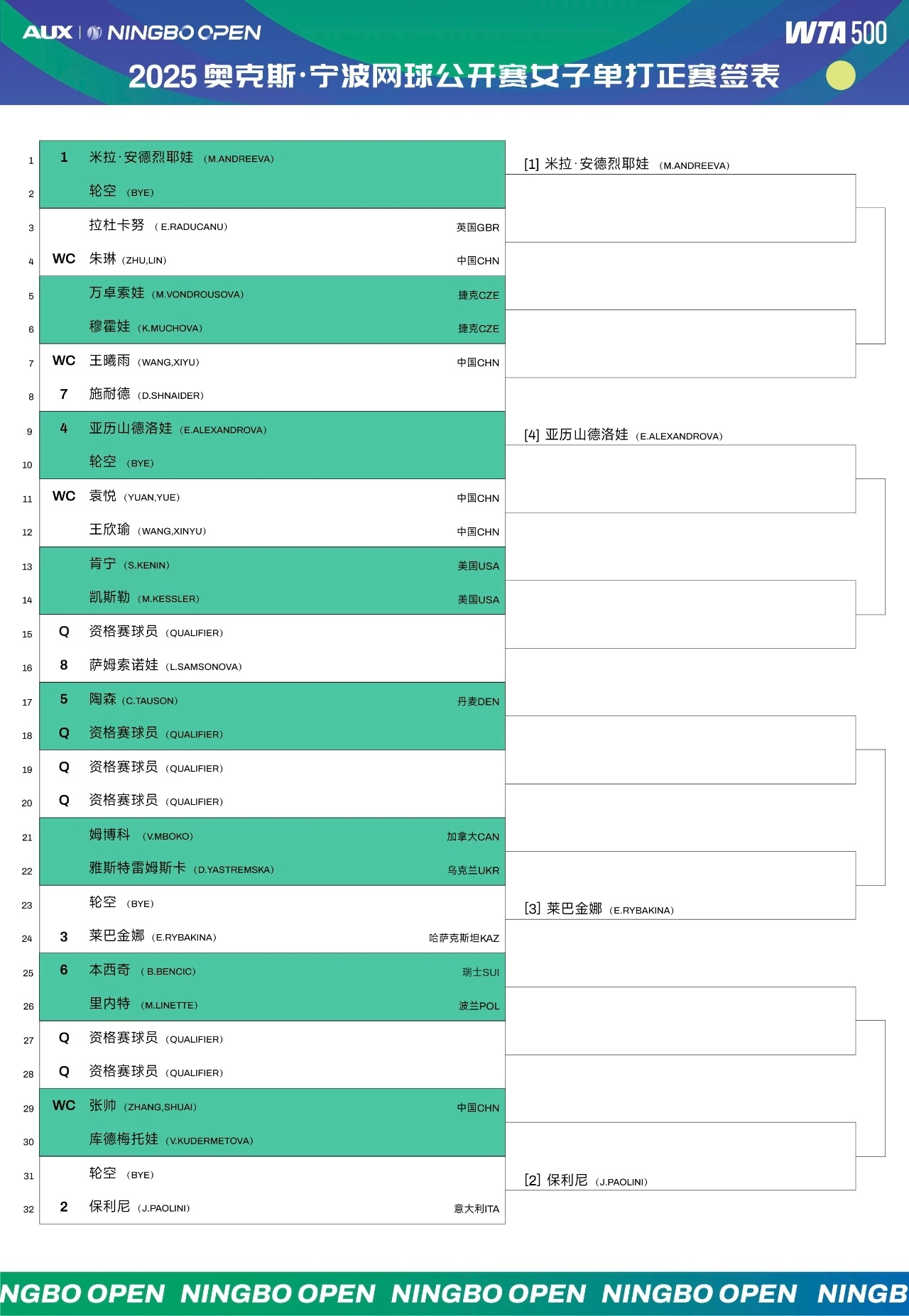 [ 2025宁波网球公开赛签表 看点十足 ]