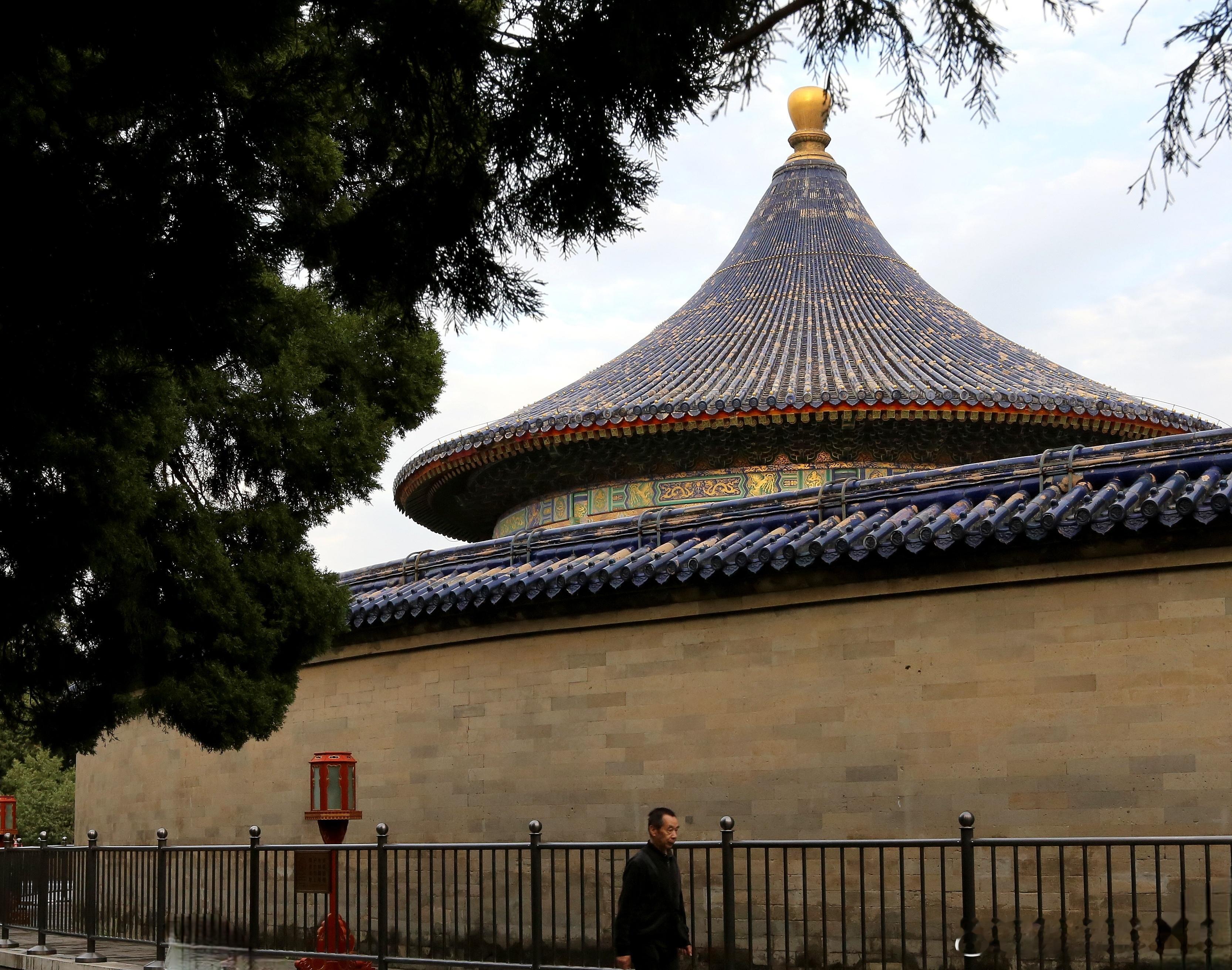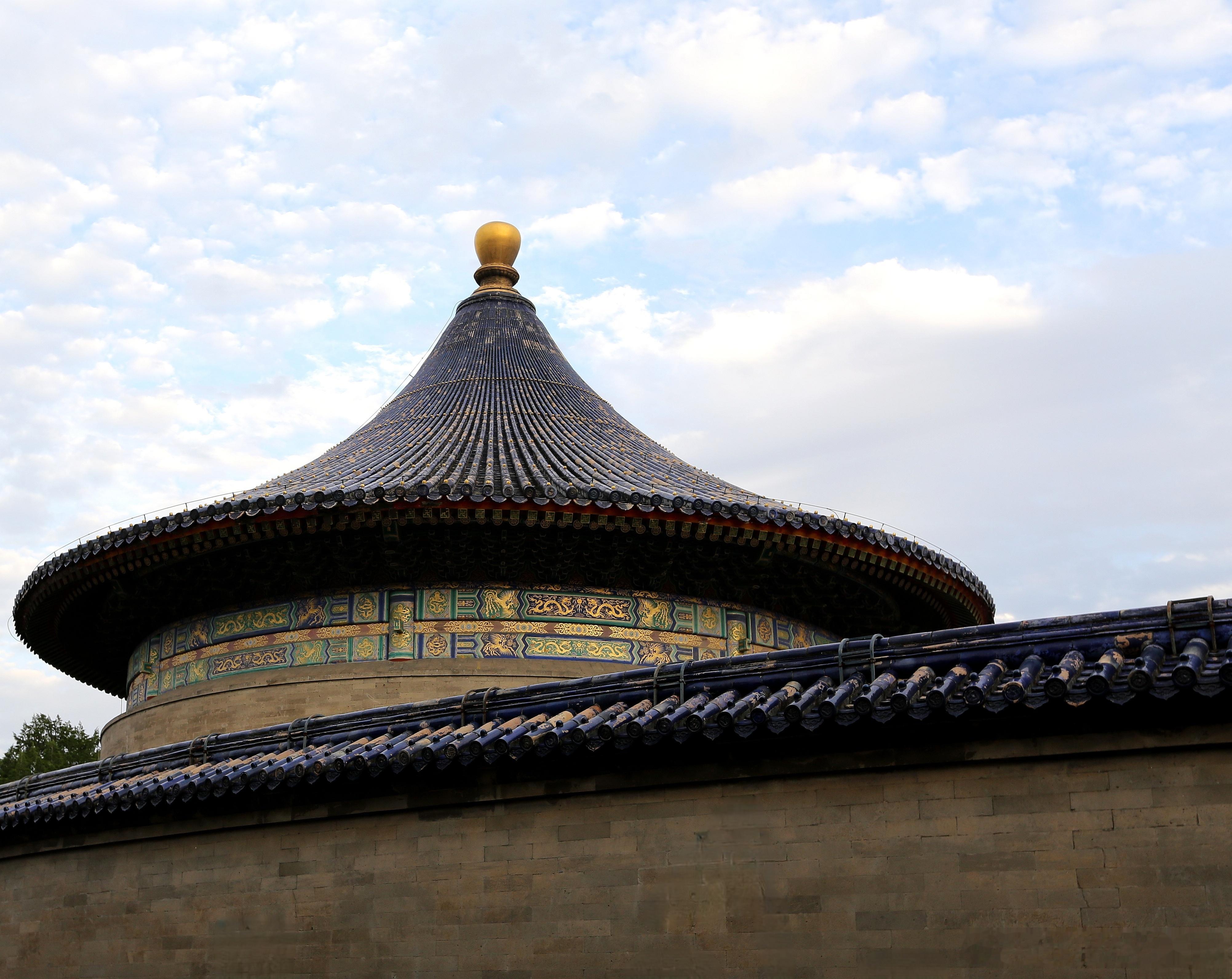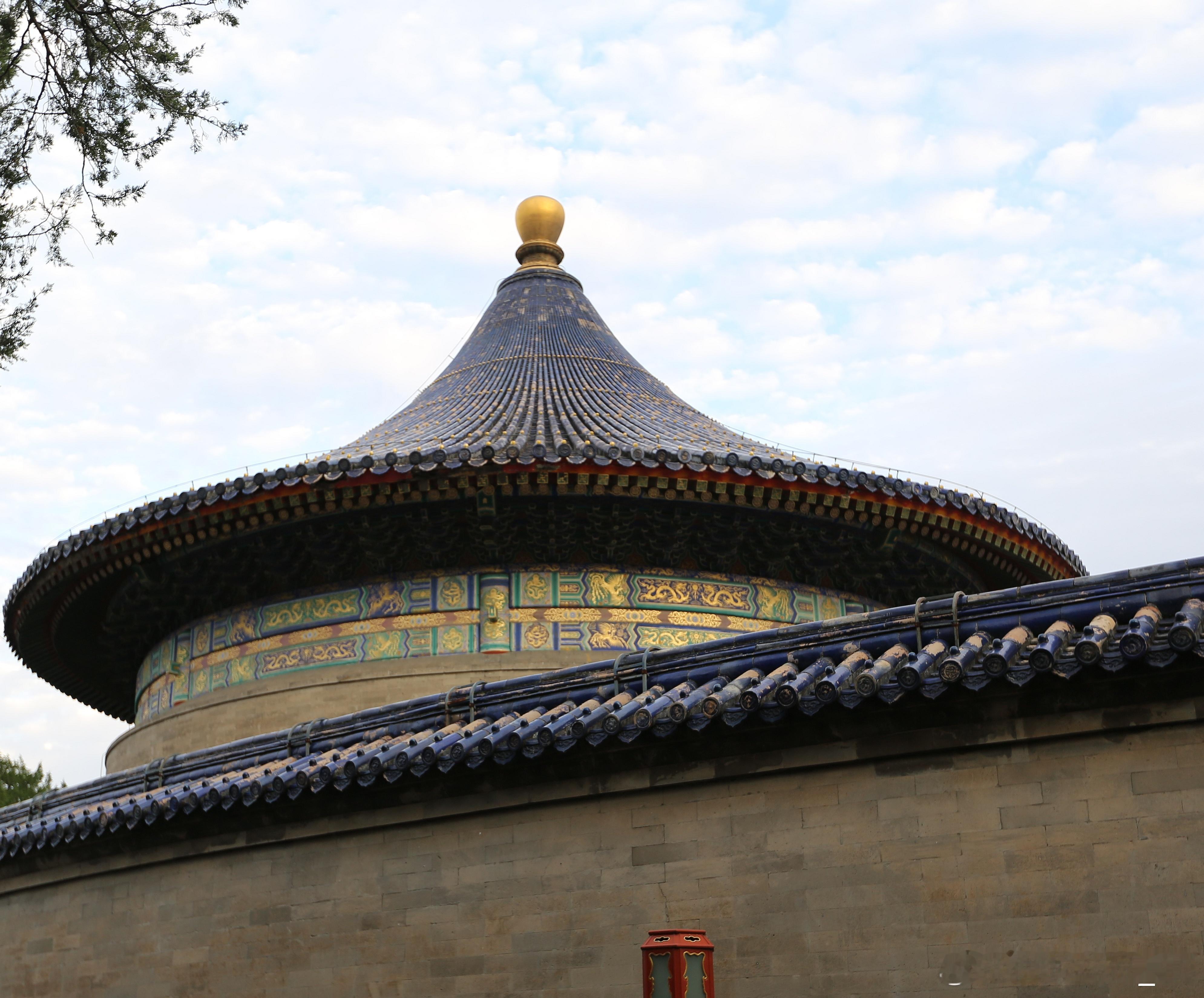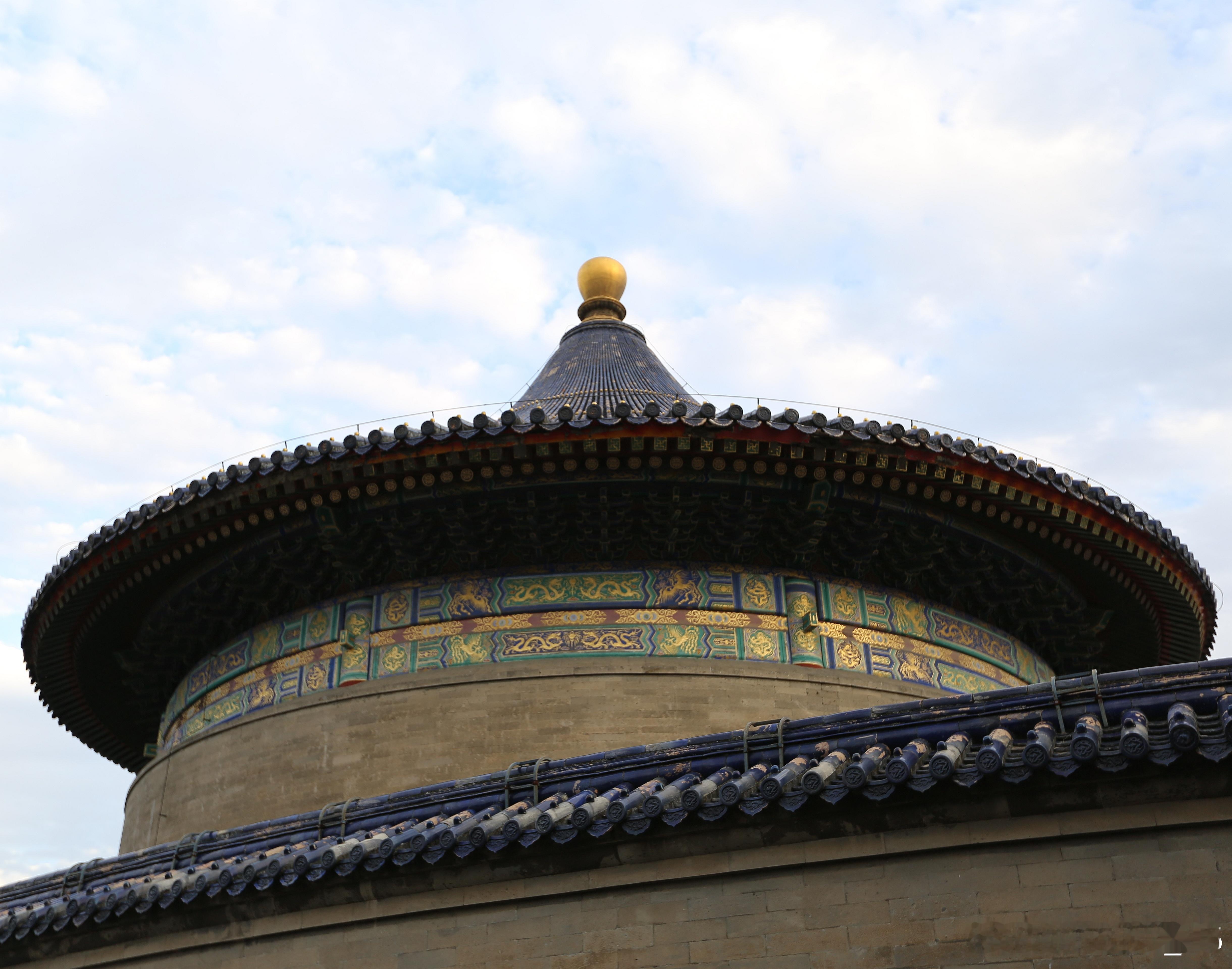 深蓝琉璃瓦攒尖顶如苍穹之冠,鎏金宝顶熠熠生辉,檐下彩绘龙凤纹精美绝伦。从不同角度望去,它或在云絮间更显庄严,或在树影中更具古韵。