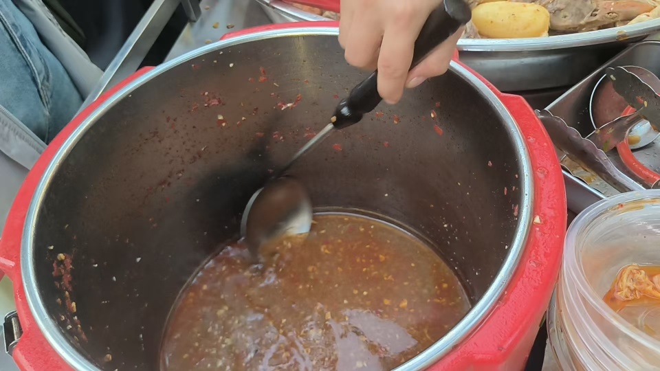 记者看到,售卖过程中,后期有顾客想要卤汤,文女士表达歉意称已经卖光了,此前文女士用勺子刮桶底,尽可能给顾客浇汤。
