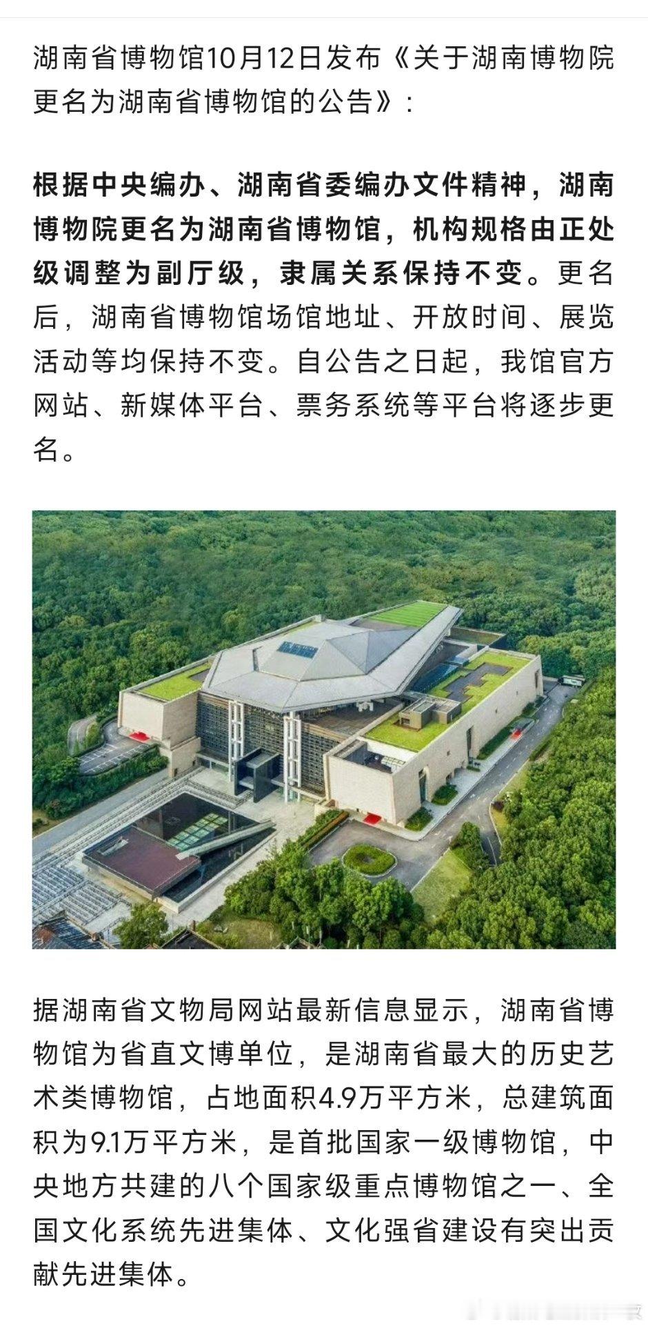 湖南博物院更名湖南博物院更名湖南省博物馆,由正处级升为副厅级!热点现场