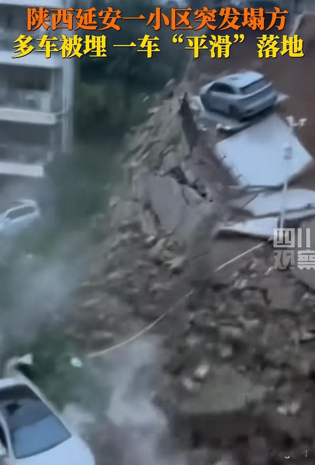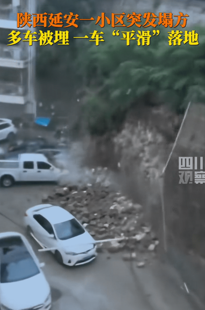 小区内部突发塌方导致多车被埋!事发10月12日早上6点过,在延安市宝塔区丰泽园小