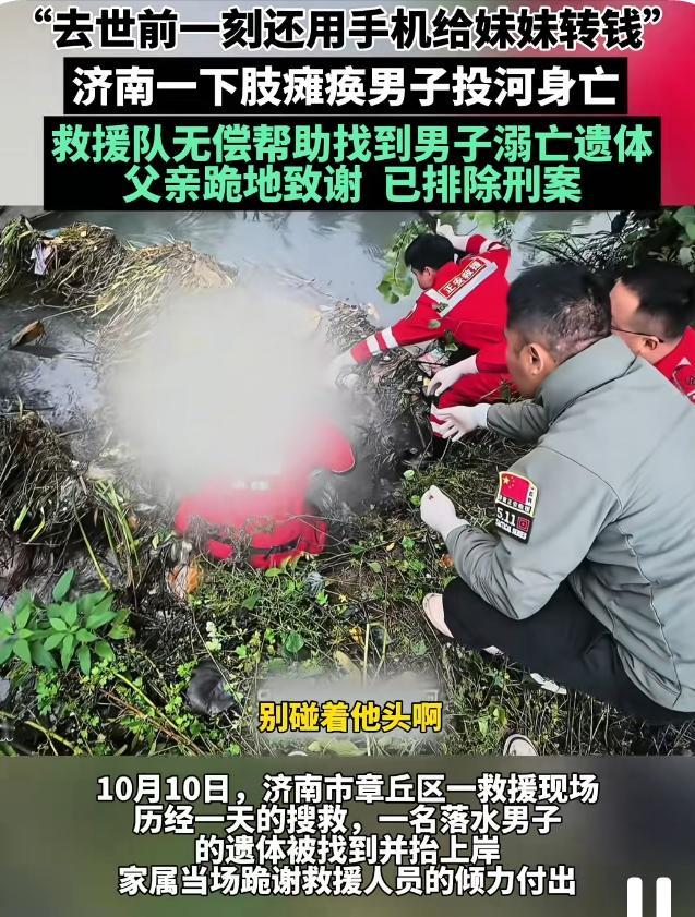 济南那名下肢瘫痪的男子投河前,把手机里的钱全转给妹妹,银行卡和手机整整齐齐放河边