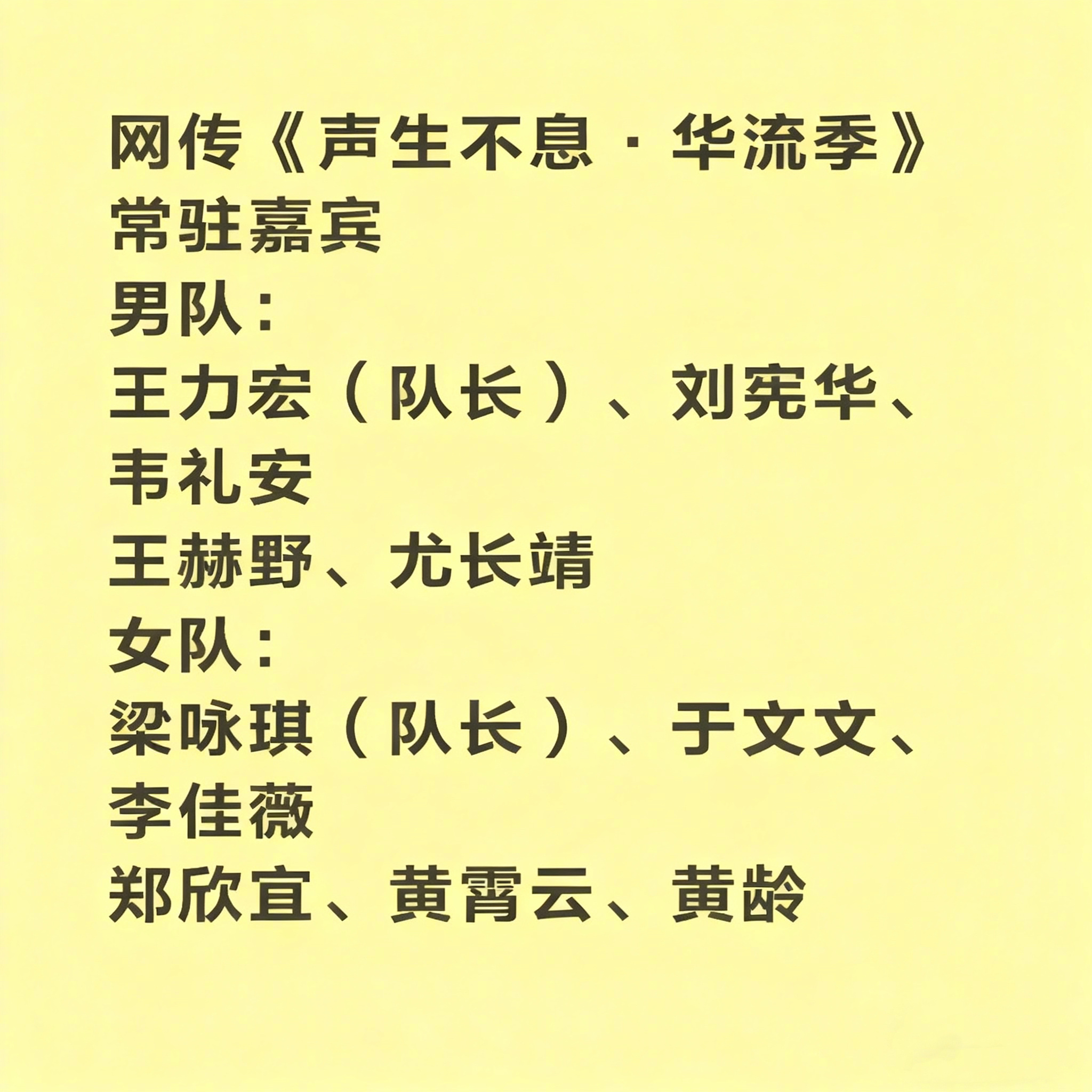 据悉,本季将采用男女队竞演模式。男队阵容:王力宏(队长)、刘宪华、韦礼安、王赫野、尤长靖;女队阵容:梁咏琪(队长)、于文文、李佳薇、郑欣宜、黄龄、黄霄云。