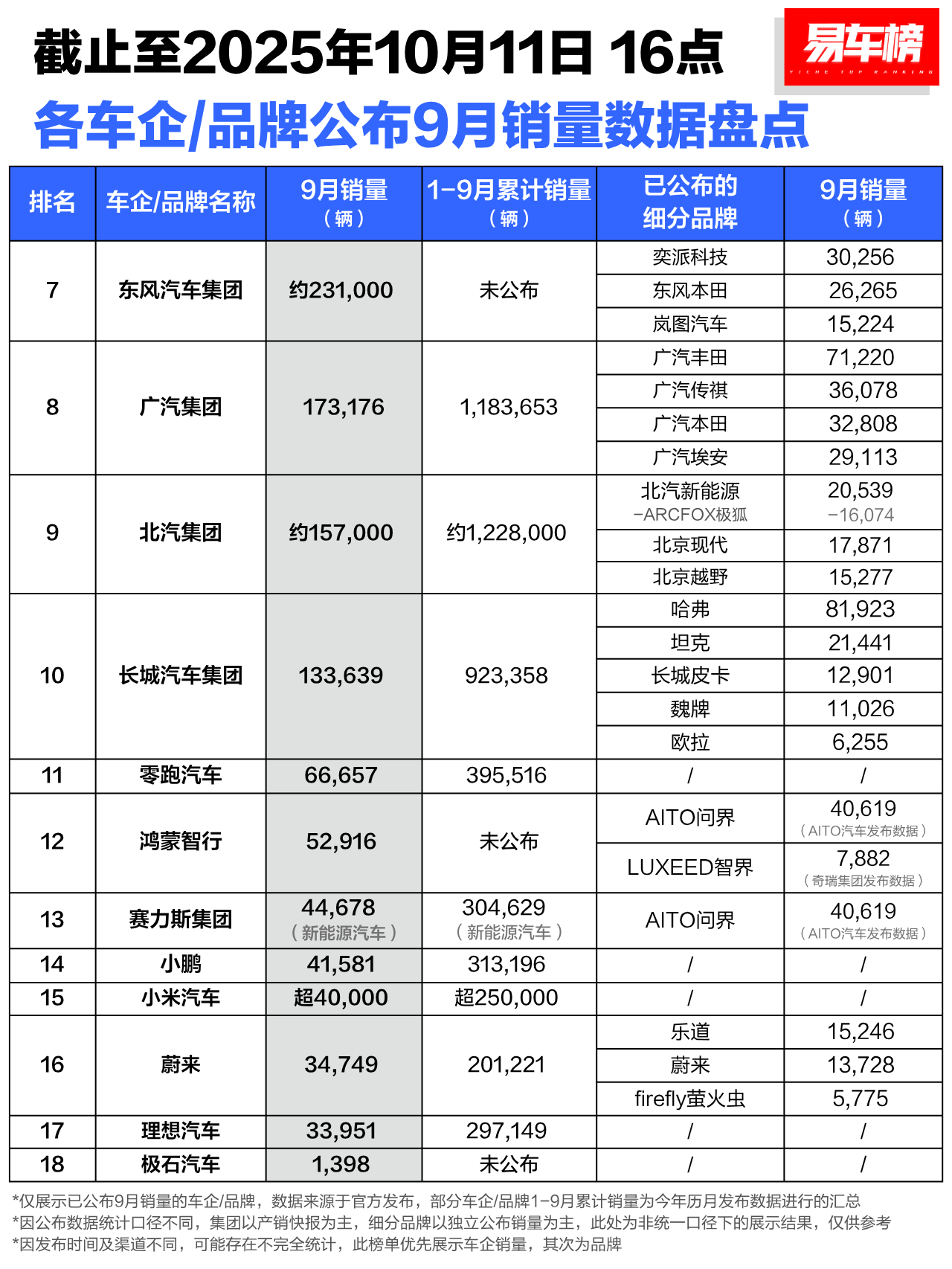 上个月各大车企在中国市场的销量排行榜,前三名——上汽、比亚迪、一汽。