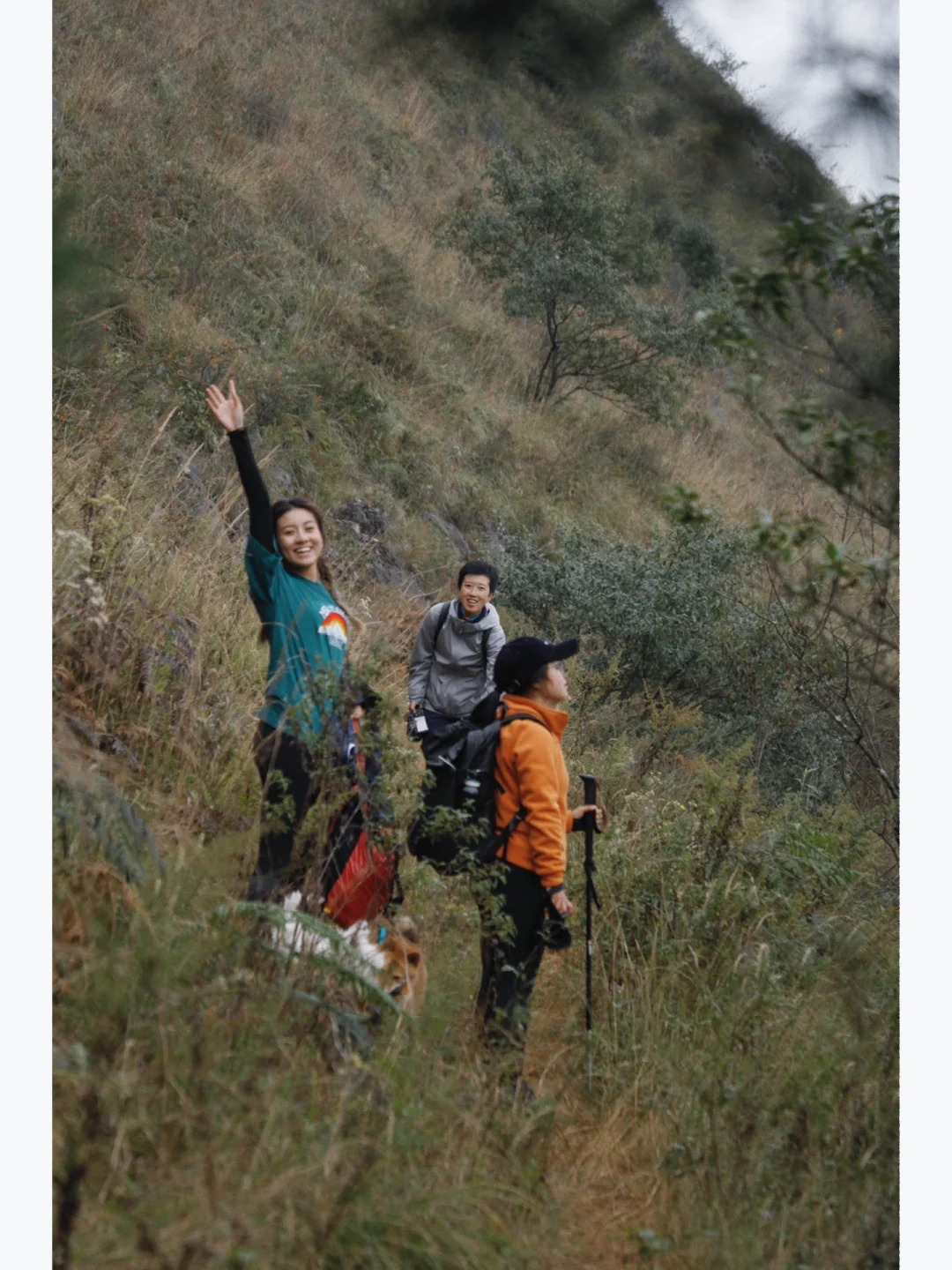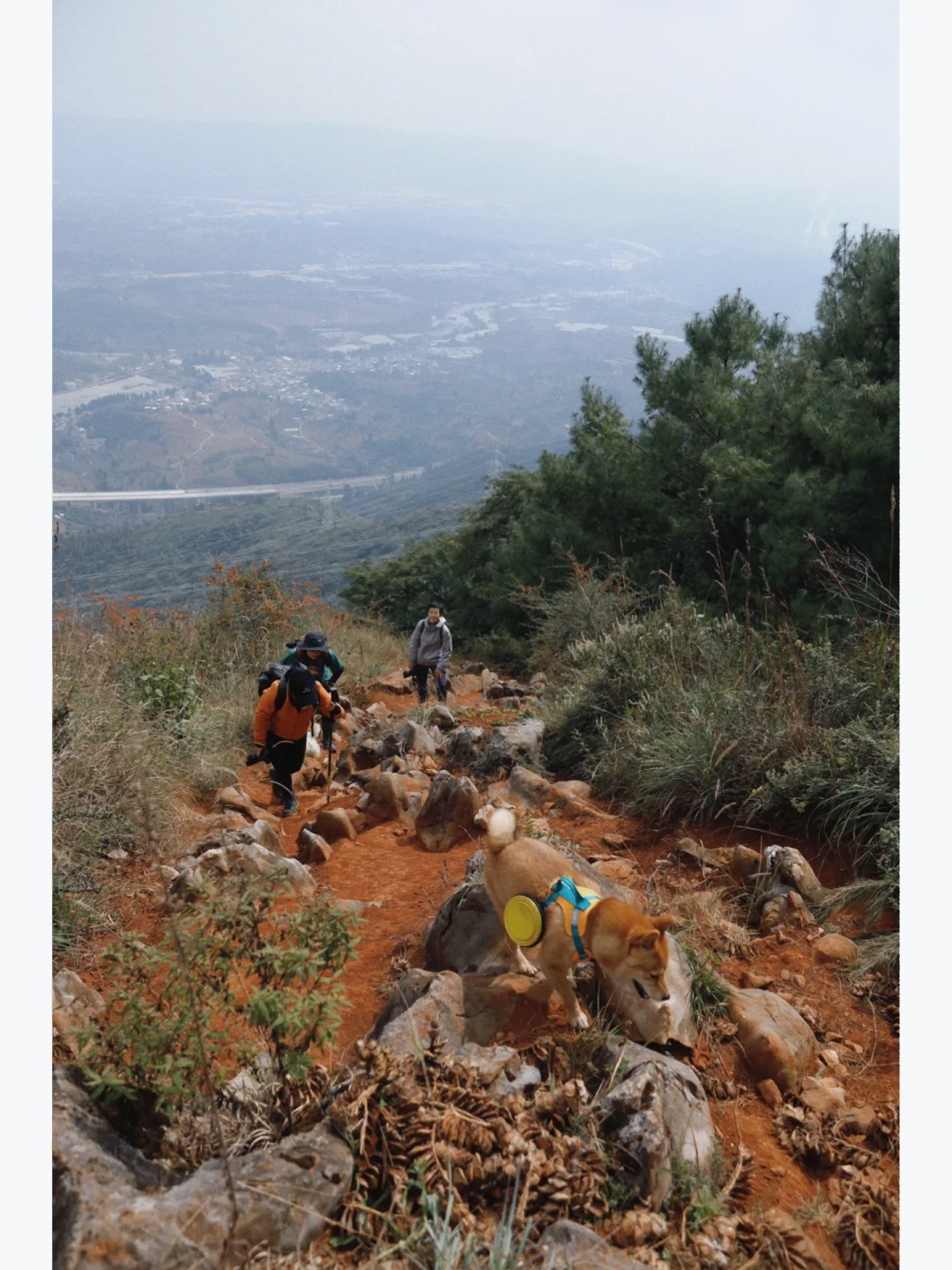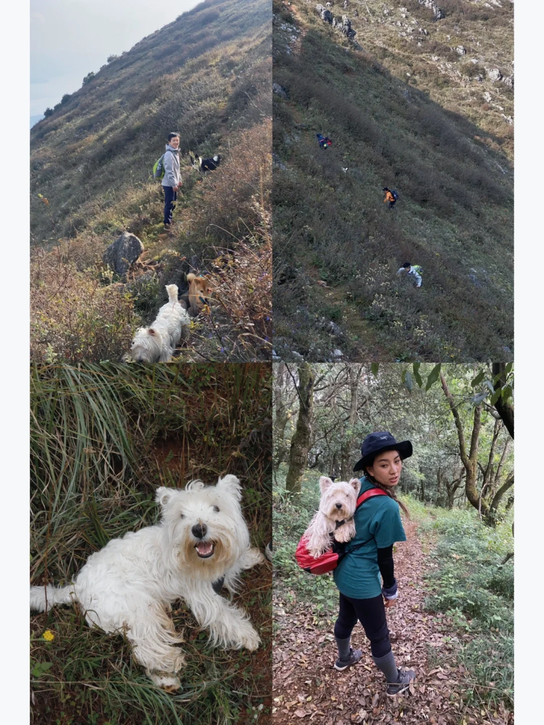 还带着🐶修狗、下山路段🐶旺仔走不动了