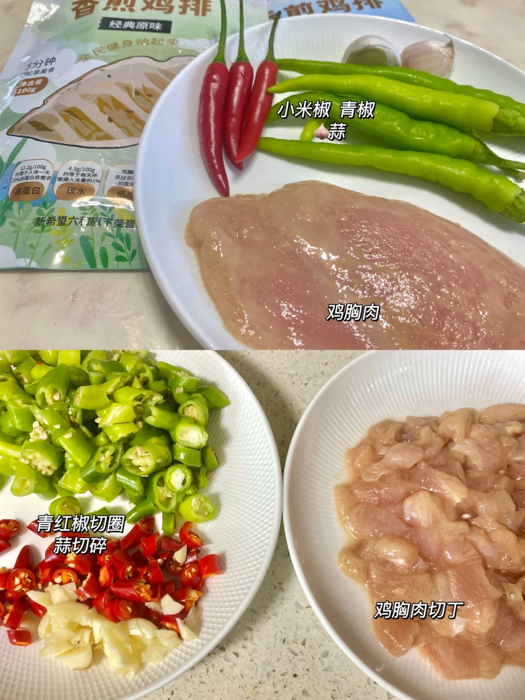 ✨食材:鸡胸肉 蒜🧄 小米椒 青椒