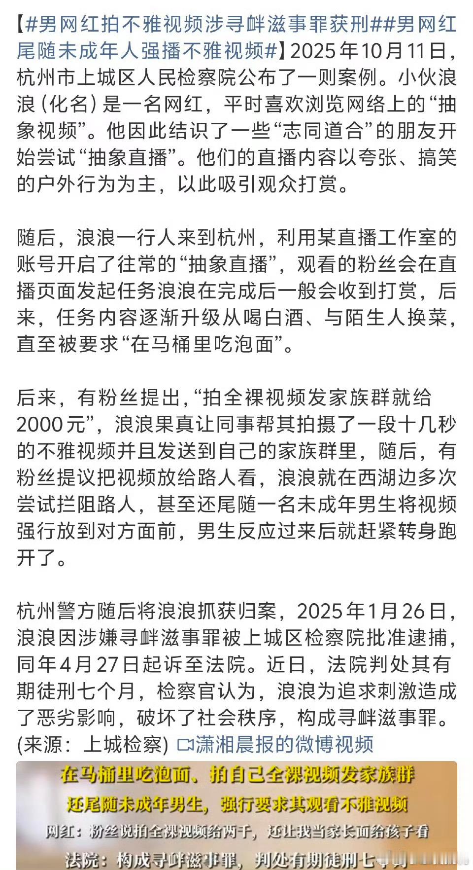 男网红尾随未成年人强播不雅视频 第一印象就是某手,从不看所谓直播 很多都是侮辱人的智商[裂开]