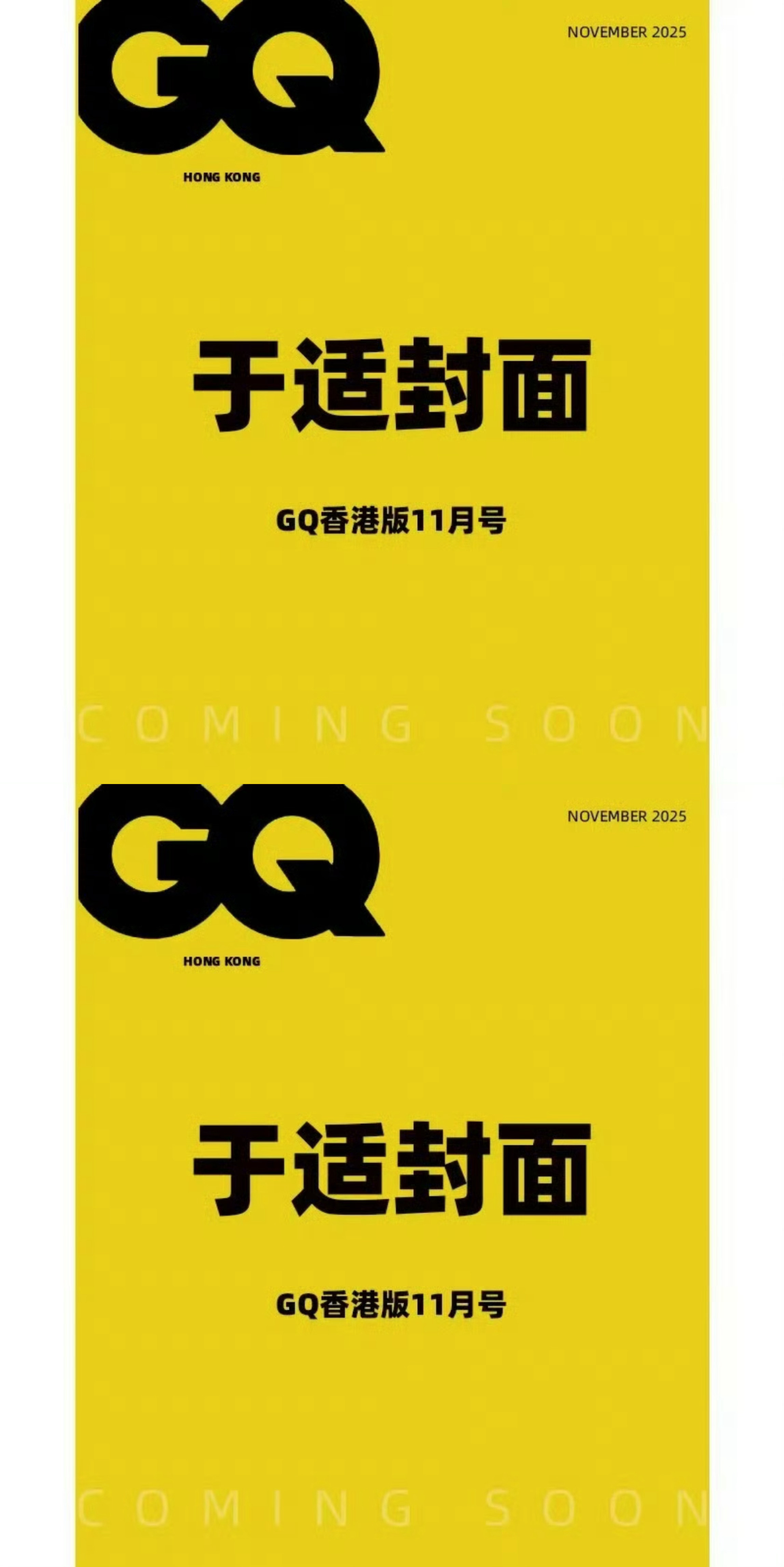 于适登GQ港版十一月刊封面 恭喜于适将登GQ香港版十一月封面,成为第一位出镜中国香港版 GQ 封面的内地面孔,也是 GQ HK 最年轻的封面男星,大写的🐮🐮