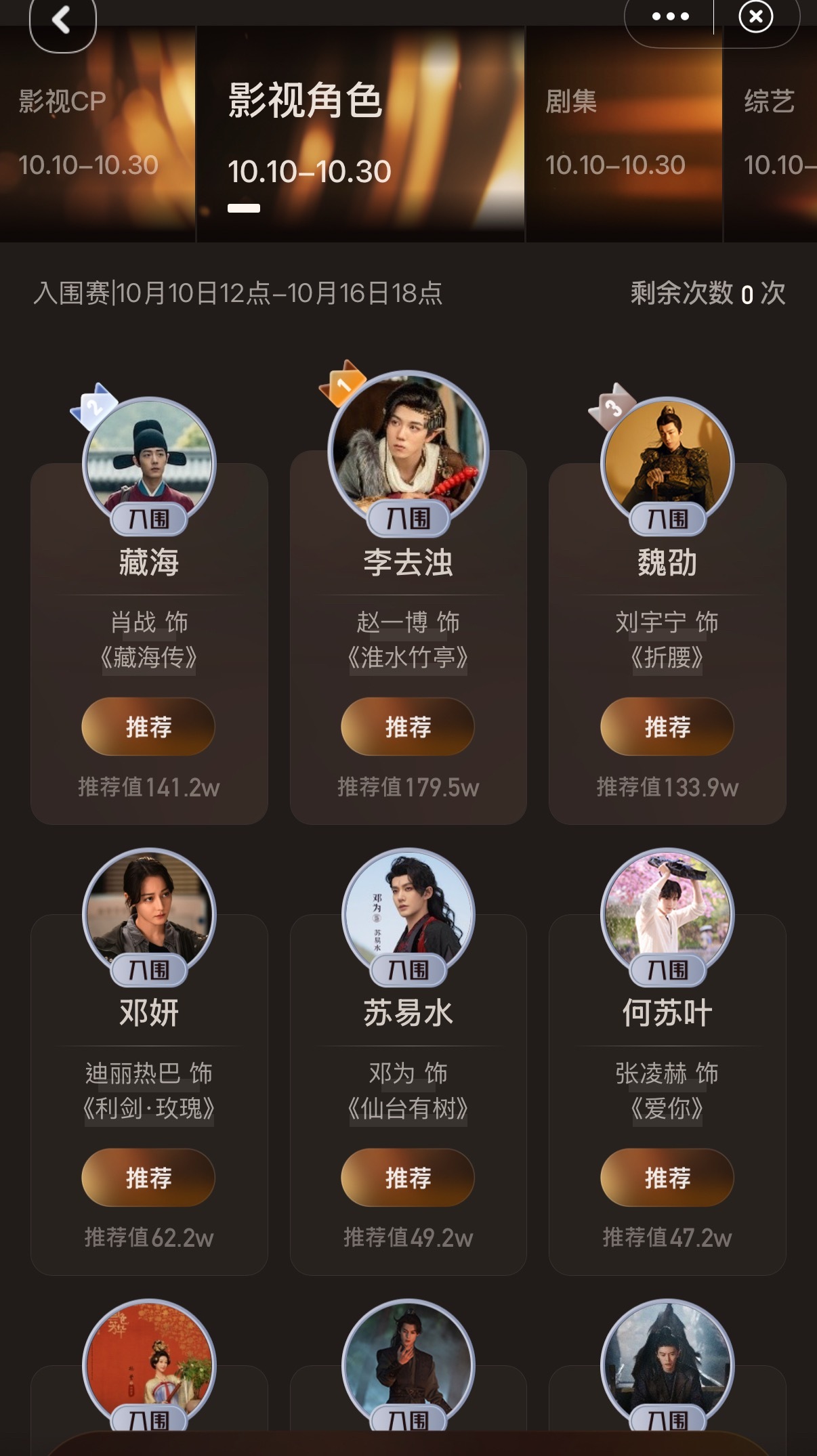 视界大会90到05生排名视界大会90-05生排名,十个勤天剧综人物第二,赵一博李去浊影视角色登顶,种地吧综艺登顶,十个勤天生来不让影视音乐登顶,你禾还是牛的!记得投票微博视界大会剧综大咖开放麦十个勤天[超话]