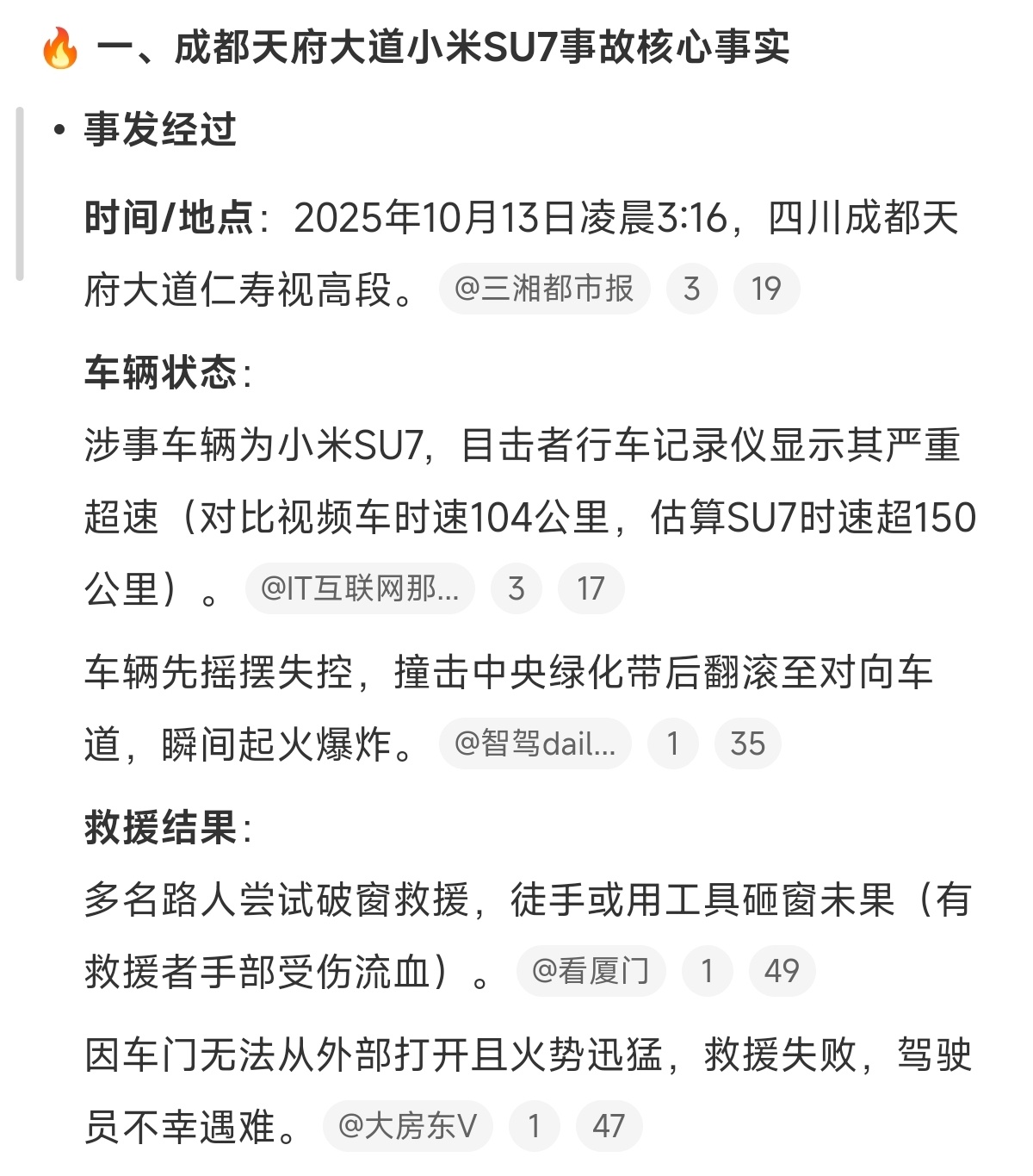 成都小米开150km/h超速+酒驾,让人说点什么好,希望人没事,还是等官方通