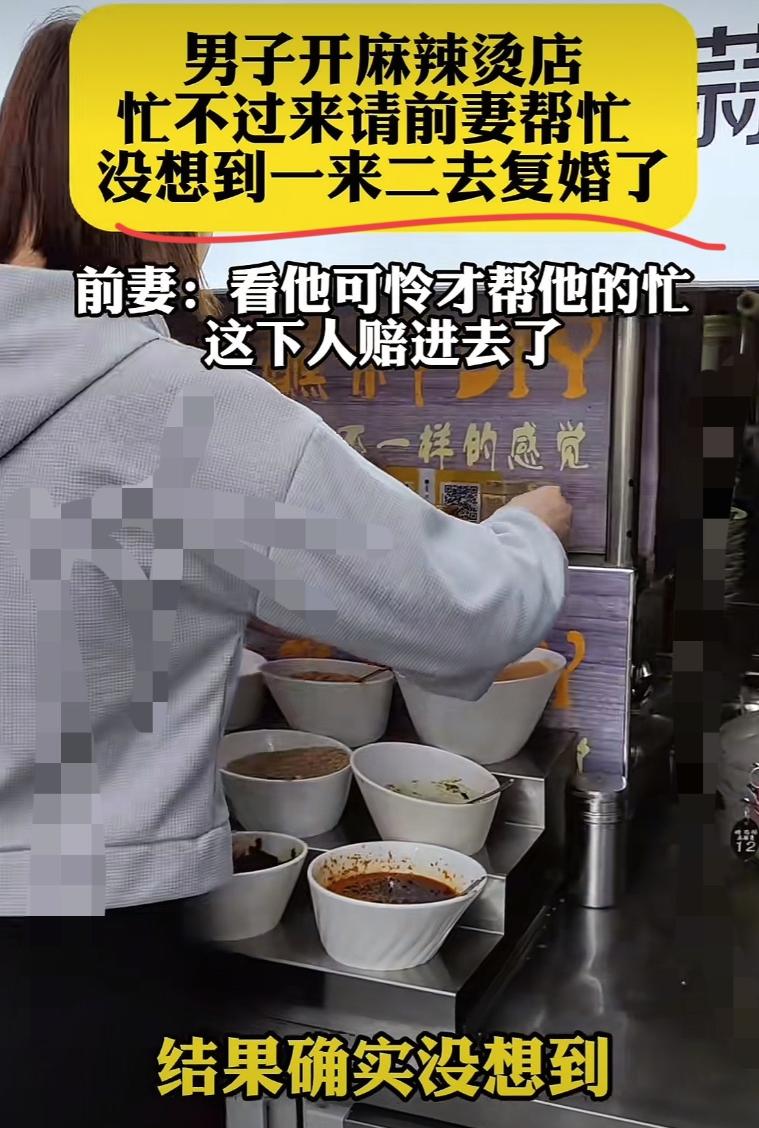 广东深圳,男子离婚一年后开了一家小店,没成想,一个人每天忙的脚打后脑勺,就把前妻叫来帮忙,前妻心疼他就同意了,结果一来二去两人因此复婚成功,妻子突然意识过来:自己好像被骗了! 据悉,两人离婚有一年的时间,分开后,男子开了一家麻辣烫店,起初他以为一个人能应付,结果生意一忙起来,完全顾不过来,每天从早忙到晚,连吃饭的时间都挤不出来。离婚一年后,他做了一个决定:把前妻叫来帮忙 前妻看他一个人辛苦,心里不忍,就答应了。她每天到店里搭把手,煮麻辣烫、招呼客人、收拾碗筷,两人在忙碌中又重新找回了从前的默契。日子一长,那种熟悉的感觉又回来了,一来二去,两人竟重新走到了一起,复婚了 事后妻子表示,本来一开始是看他可怜才过来帮忙,没想到最后还把人给搭进去了 说实话,虽然妻子,嘴上说是被“套路”了,可心里其实明白得很。她要是真不愿意,哪会天天起早贪黑跟着他在店里忙?说到底,她是看到了变化,也看到了诚意 其实,他们当初离婚,并不是因为什么原则性的大问题。更多是生活中的琐碎和失望,比如妻子觉得男人不够上进,男人觉得妻子不理解自己。分开后,两人都没再找别人,心里还留着对方的位置。男人也许早就意识到了自己的问题,但直接低头认错,总觉得面子上过不去 于是,他用了这样一种方式:让前妻来帮忙,在共同忙碌中,慢慢把断了的情感重新接上 很多感情走着走着就散,是因为有人失望了;可又能重新走到一起,是因为那个人变了,也值得再信一次。复婚对她来说不是心软,而是心定