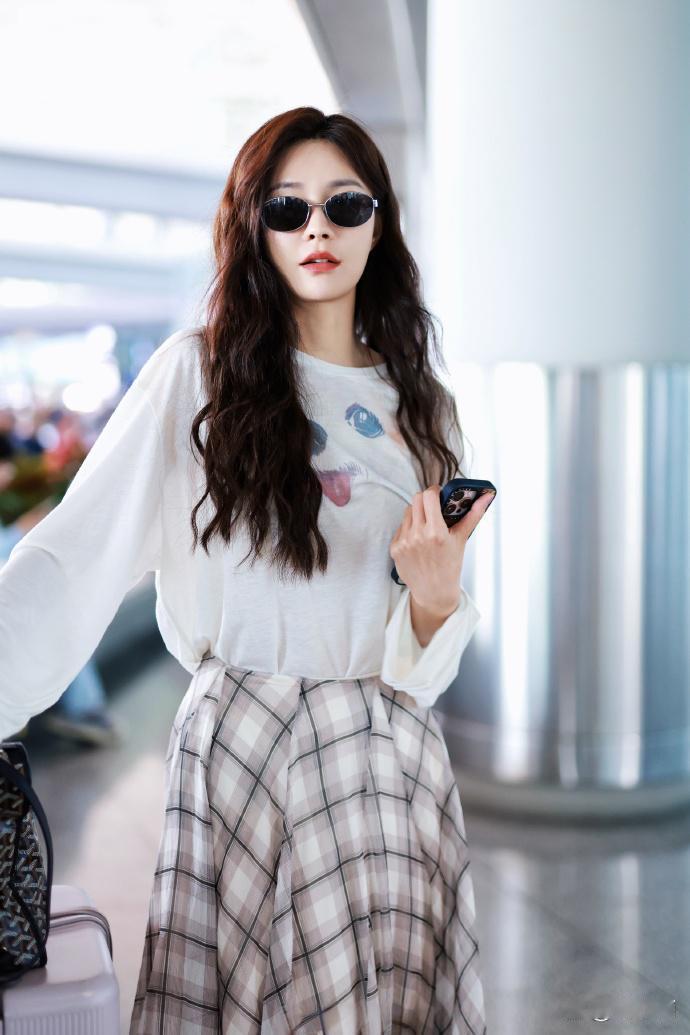 沈梦辰结婚后的状态也太好了!穿白色薄衫搭配格纹半身裙,造型时髦又洋气,减龄感十足,越活越年轻~