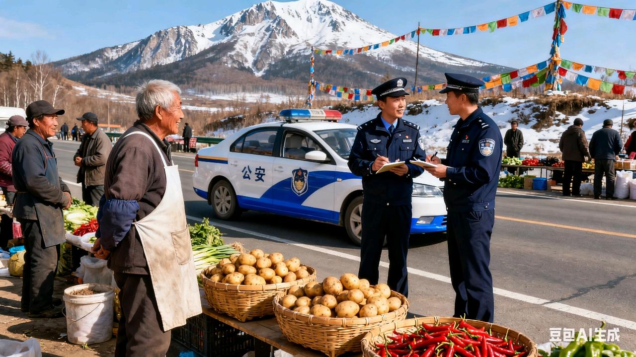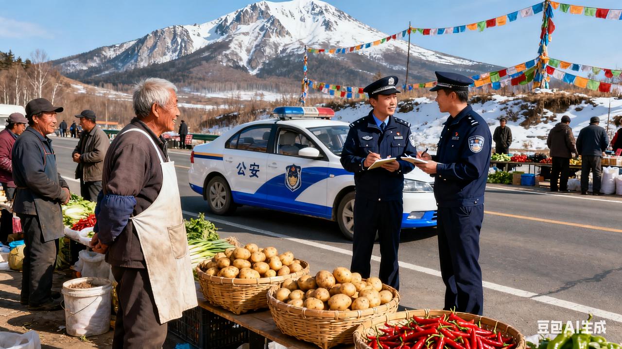 吉林长白县,火到人民日报!”男子去长白县旅游,看到路边有很多菜贩摆摊,突然一辆警