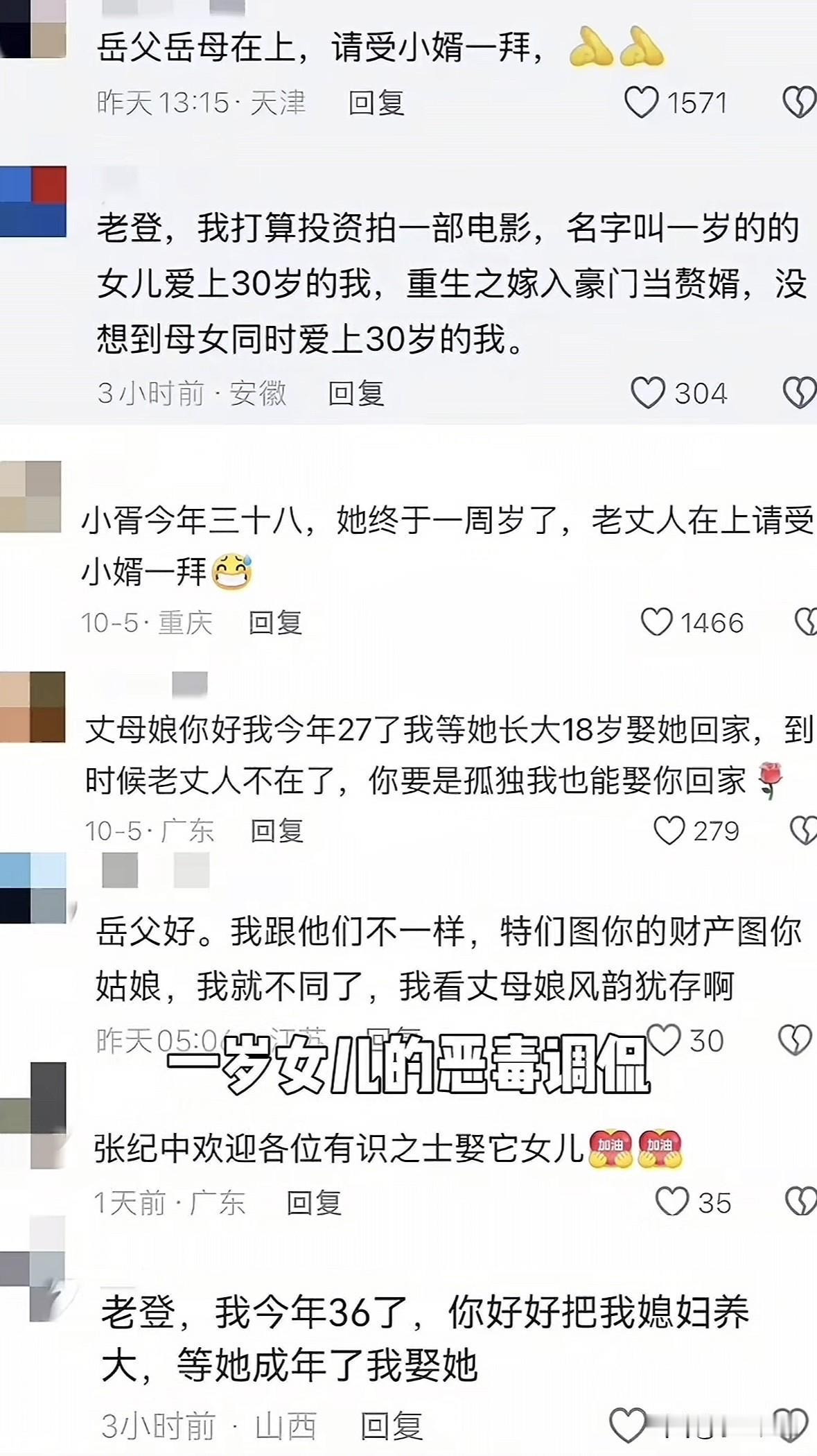 张纪中导演 你说你都70多岁了 你还跟网友较劲,还跟网友互骂?你有好吃的东西,你就藏在家里自己吃嘛,你不要拿出炫耀嘛。广大网友都没吃上,就你吃上了,那隔着谁,谁不眼红你?既然选择把私事放到网络上,那么你就要做好心理准备,网络上不全都是正面的声音。 网友的点不难理解:既然总把家里的日常、对孩子的宠爱晒出来,就得接受大家的议论,毕竟不是所有人都能共情这种生活。但换个角度想,当评论区里全是对刚满周岁孩子的 “求娶” 玩笑,换谁当父母能淡定?张纪中回怼的急脾气,本质也是护女心切。 其实这事没谁对谁错。公众人物晒生活难免被围观,但网友的调侃也该有底线,别拿无辜孩子开涮。