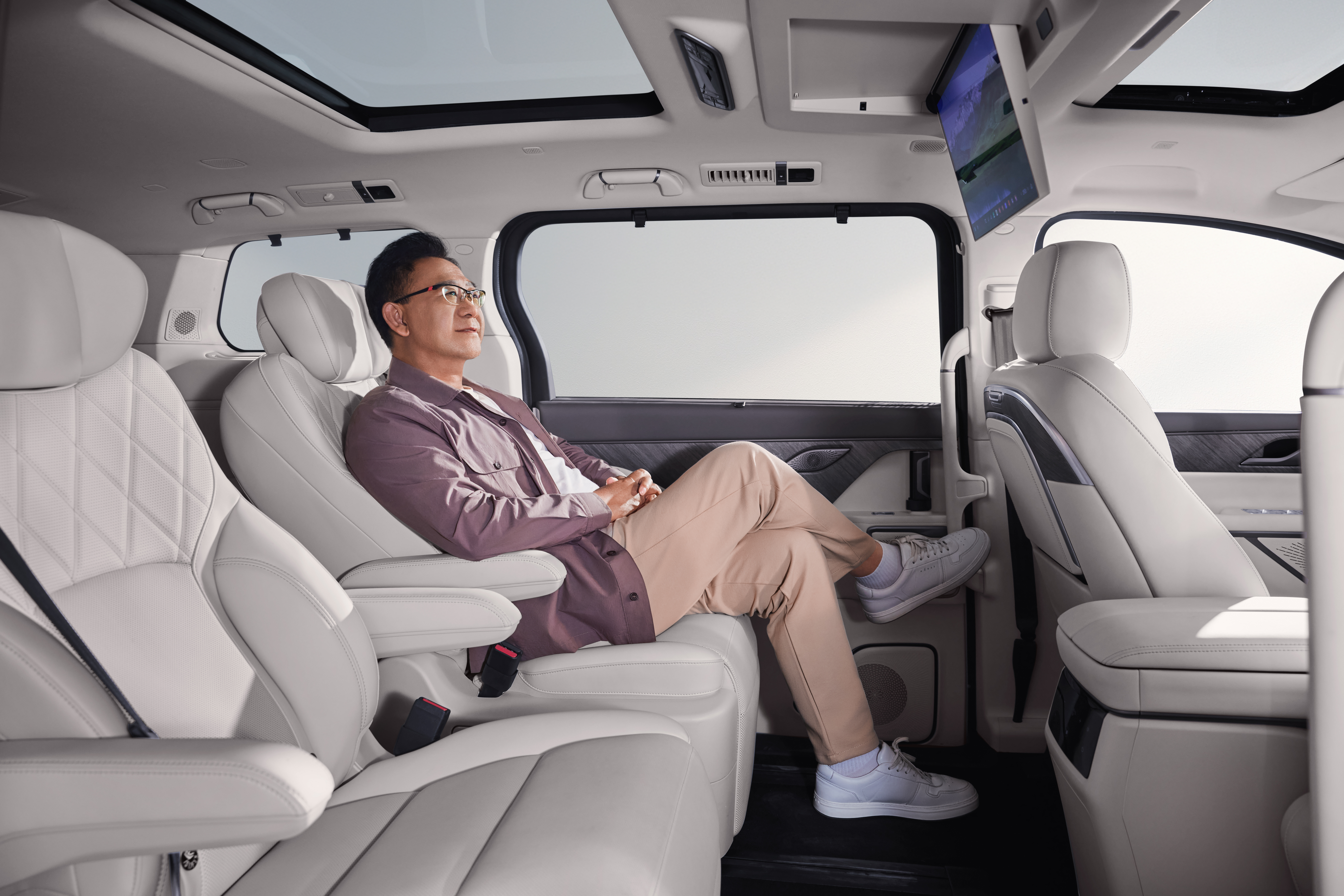 不仅如此,高山7的设计也完美契合了姜武作为导演和演员的多重身份。第三排座椅可以前后滑动,给大家留足了“加戏”的空间,第二排的开阔视野和全景侧窗让每一排座位都像是头等舱,舒适感爆棚。