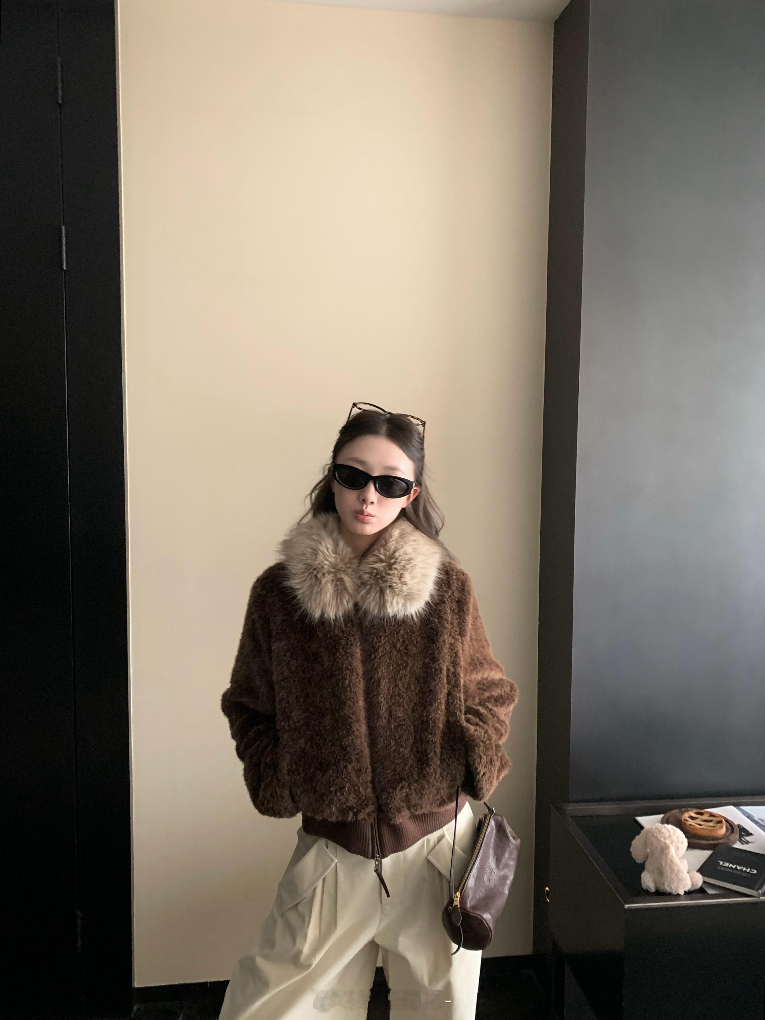 拿出我的私藏外套(一到冬天我就爱穿毛茸茸的外套上身贵贵保暖又拿得出手!毛绒绒的大毛领 暖呼呼像是的行走的小棉被!☕️