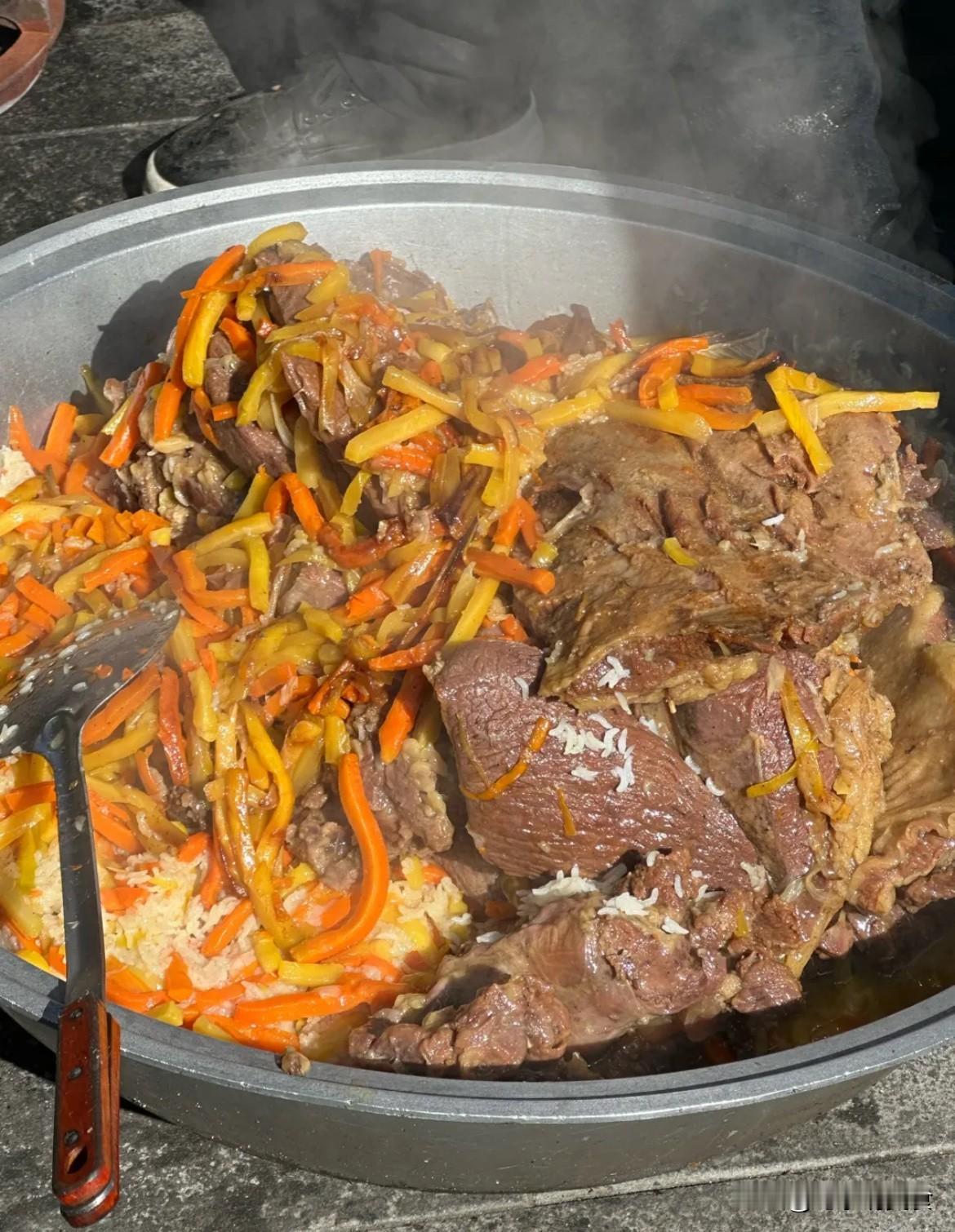 这地方在乌鲁木齐是一个奇怪的存在! 这种老式新疆臊子面! 现在很少见了! 每天都是人山人海。 今天去石人沟抓羊,顺路在葛家沟这个大市场逛了一圈,这地方远离市区,奇怪的是,这么偏僻的山沟沟里,却有一个烟火气很浓的地方,老远看路边有人端着碗吃臊子面,到跟前一看没位子,怪不得有人端着碗吃,饭点真的不好停车。转过来转过去找不到车位。人特别多。停车院子直接都堵死了。要了一碗原味臊子面,来到这里有好多臊子面的店,这家这家比较大一点,臊子面份量很大一碗,里面豆腐挺多的。有萝卜,有几块肉,属于新疆老派臊子面,但他这个面挺奇特,味道有点像牛肉面比牛肉面要麻,花椒伟比较重,大快朵颐吃美了!