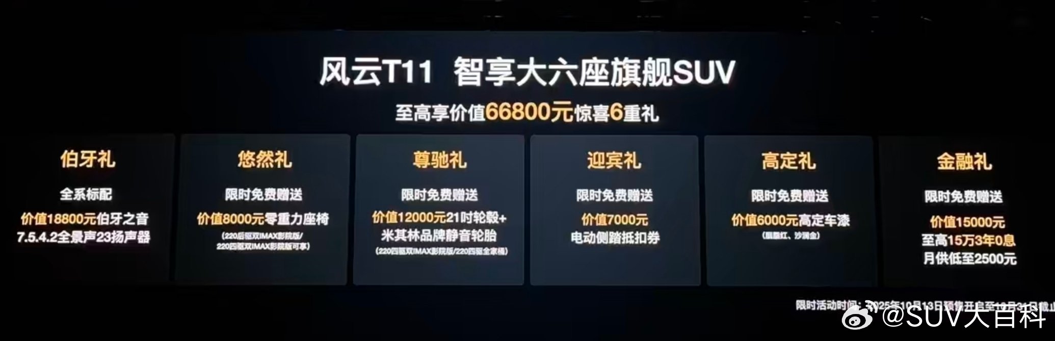 权益还包括伯牙之音音响、零重力座椅、21吋圈、米其林静音胎等配置,以及至高15万3年0息金融方案