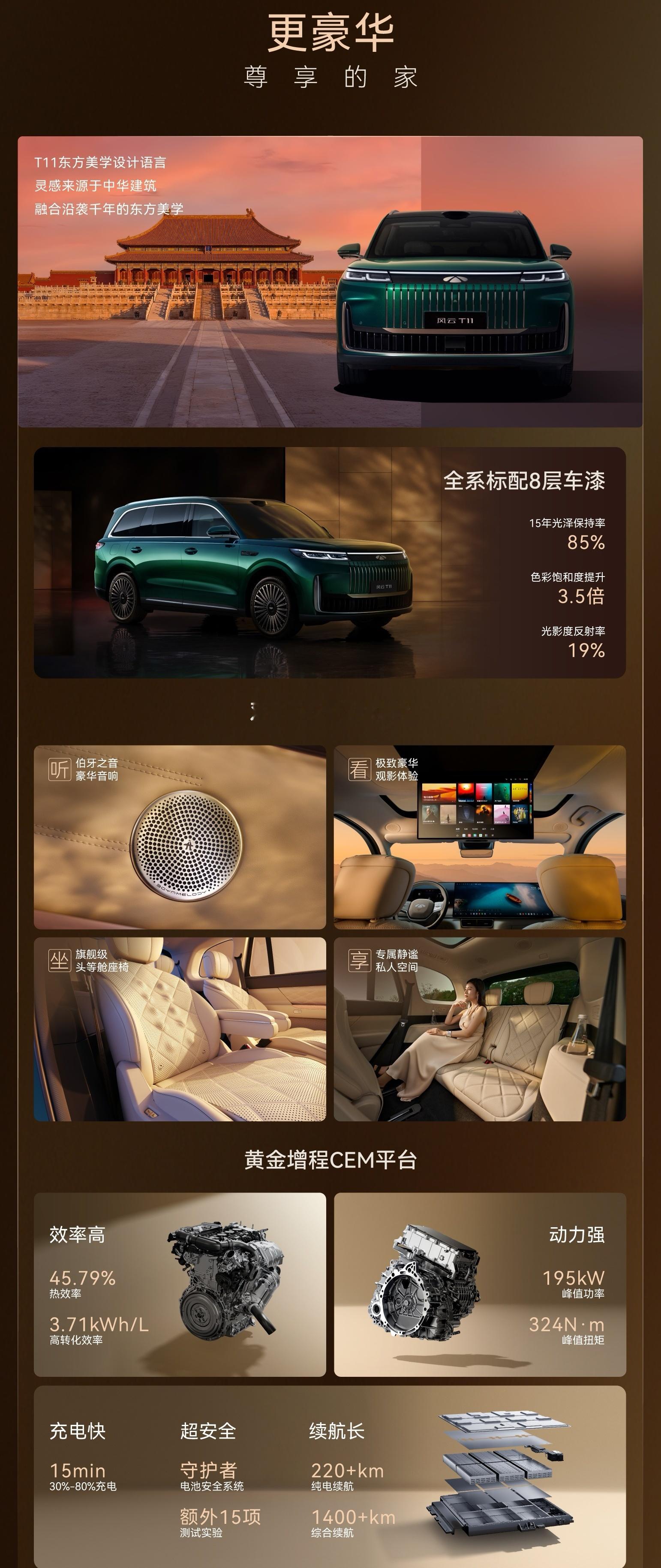 风云t11正式预售23扬声器,16出风口,11气囊,超过5米2车长……至少在硬