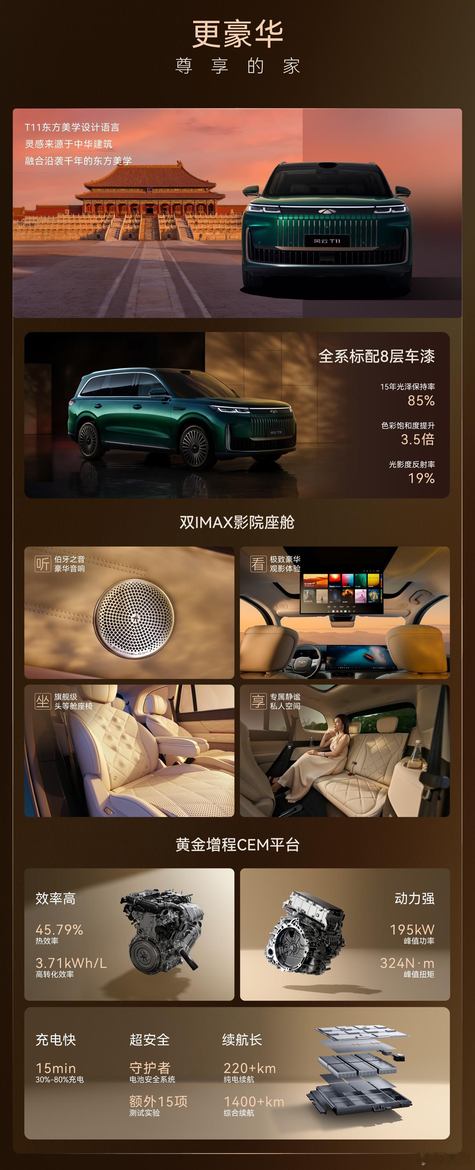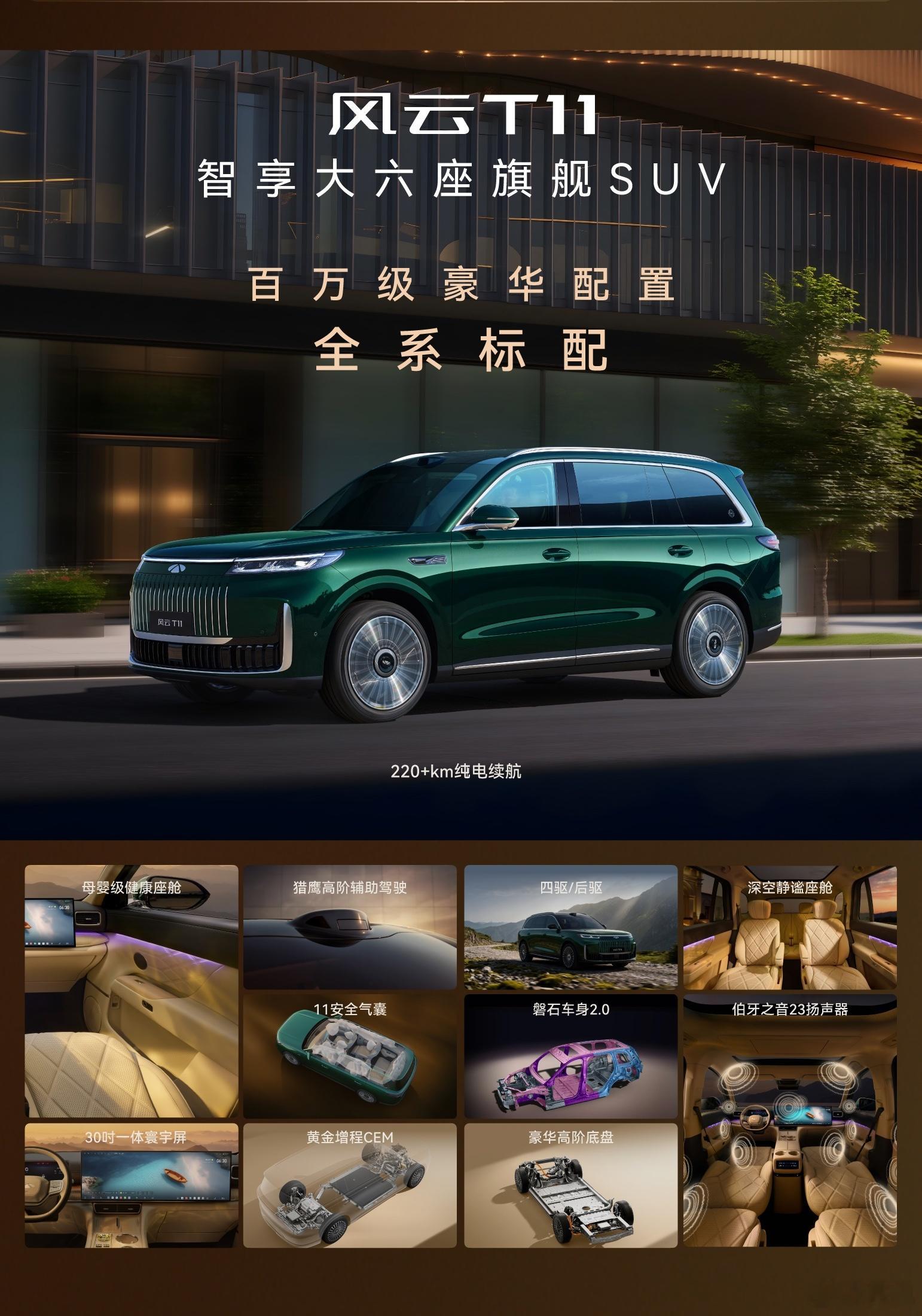 5米2+车长、大6座、1.5T增程、CLTC纯电续航220km、综合续航1400km+、全系标配伯牙之音23扬声器,高配还有激光雷达(momenta智驾方案)。19.99-26.49w预售价,能成爆款吗?风云T11正式预售兑现百万价值 ​​​