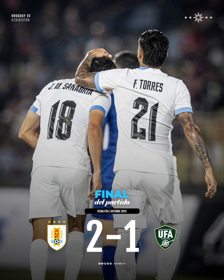 直播吧10月13日讯在刚刚结束的国际友谊赛中,乌拉圭2-1战胜乌兹别克斯坦,托雷斯、马努埃尔建功,吉亚扳回一球。乌兹别克斯坦新帅卡纳瓦罗无缘上任2连胜。