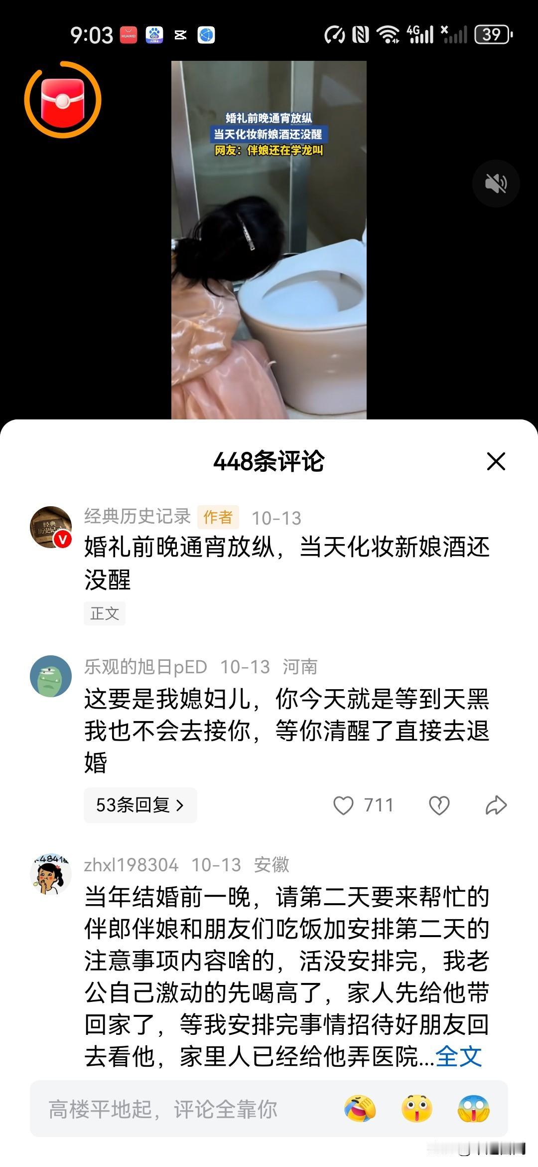 近日女子结婚前夜放纵整晚,化妆前伴娘还龙叫,[捂脸]这种说法也不知道暗示啥?女子化妆前半睡半醒,一会又去厕所干呕! 这种女人还能要吗? 这就好比某新闻说一女结婚前夜与前男友通宵达旦并发生性关系如出一辙,这种女人谁要谁后悔[大笑] 还能退货吗?
