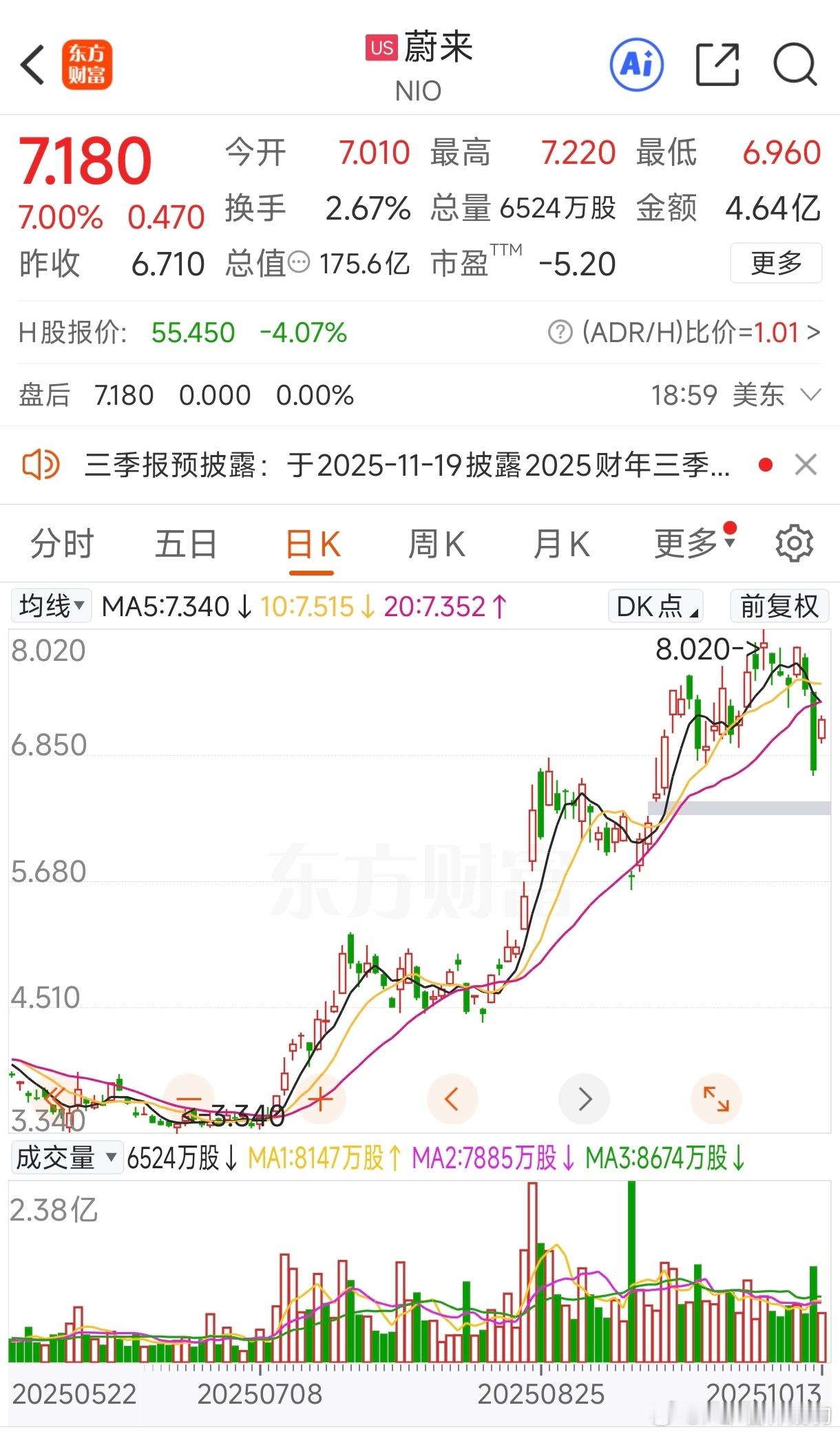 本来要等$蔚来 NIO$ 跌倒6.5补仓,结果昨晚中国资产暴涨,蔚来大张7%,显示出了,老美对中国科技资产的信心。