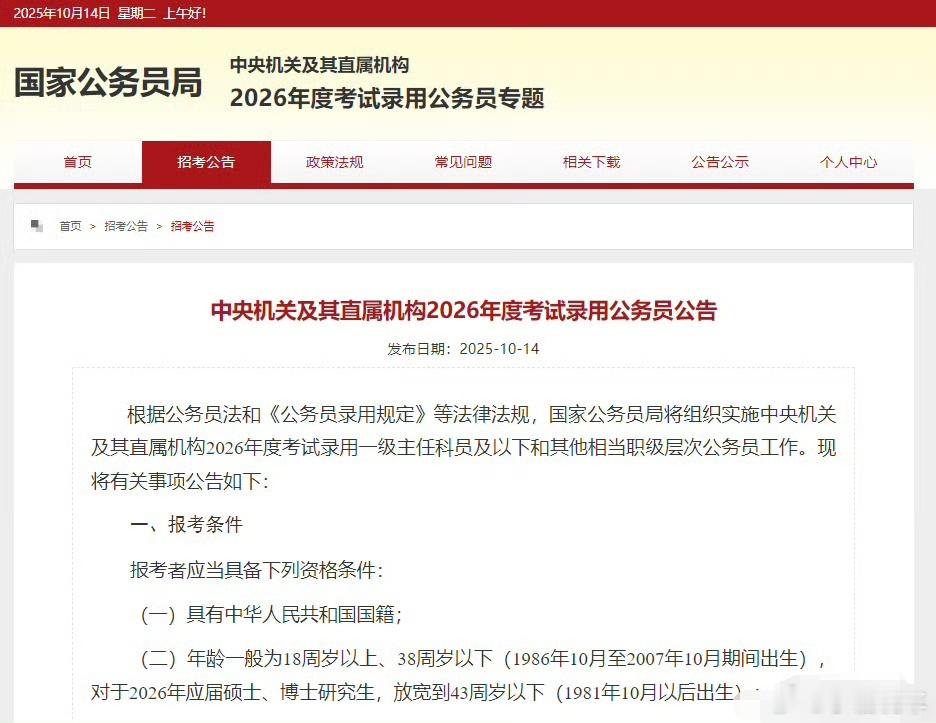 国考公告2026国考公告,报名年龄上限由35周岁调整到38周岁!!!