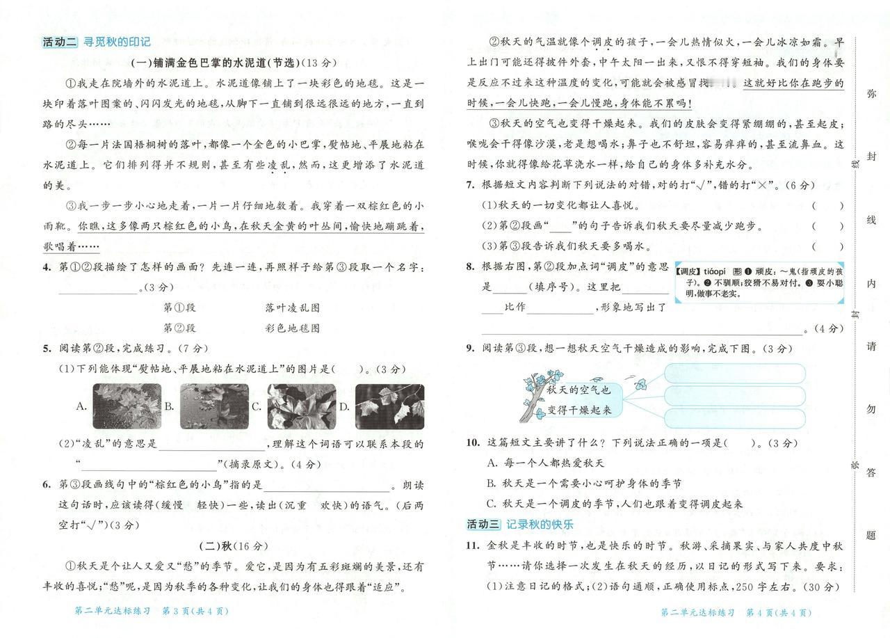 2025秋最新统编版语文三年级上册第二单元达标练习