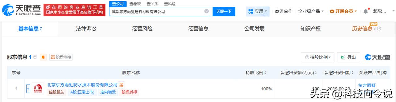【东方雨虹在成都成立建筑材料公司注册资本500万】 天眼查App显示,近日,成