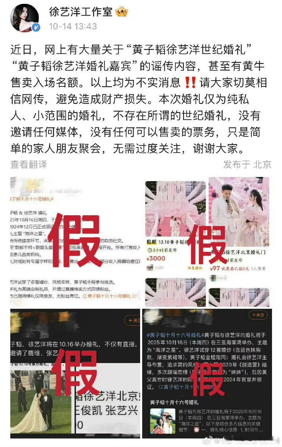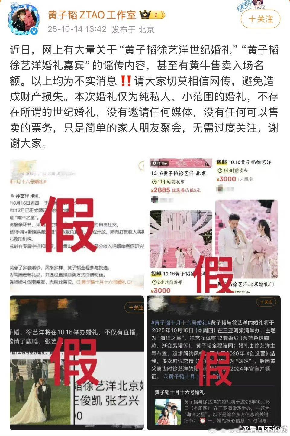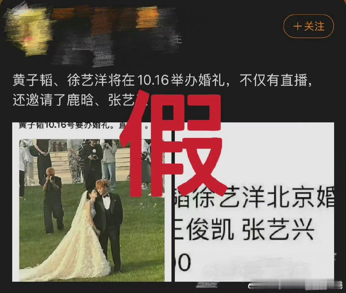 黄子韬和徐艺洋工作室辟谣婚礼信息 所以会是鹿晗张艺兴不会来了对吧[捂嘴哭][捂嘴哭][捂嘴哭][捂嘴哭]