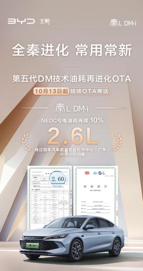 呼叫所有秦LDM-i车主,您有一条油耗OTA待查收,刚出的时候这车百公里亏电油