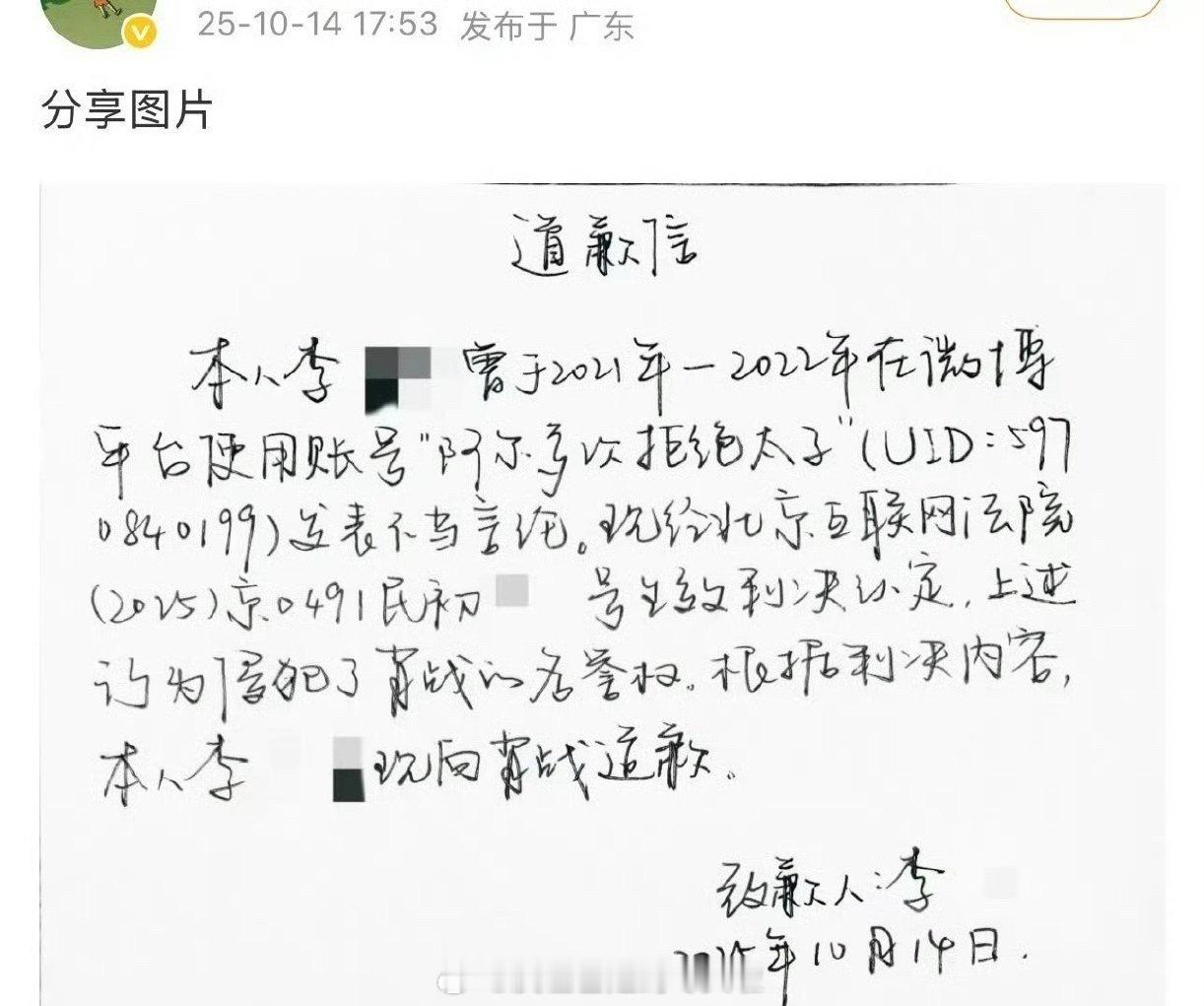肖战维权成功,嘿粉手写道歉信公开道歉
