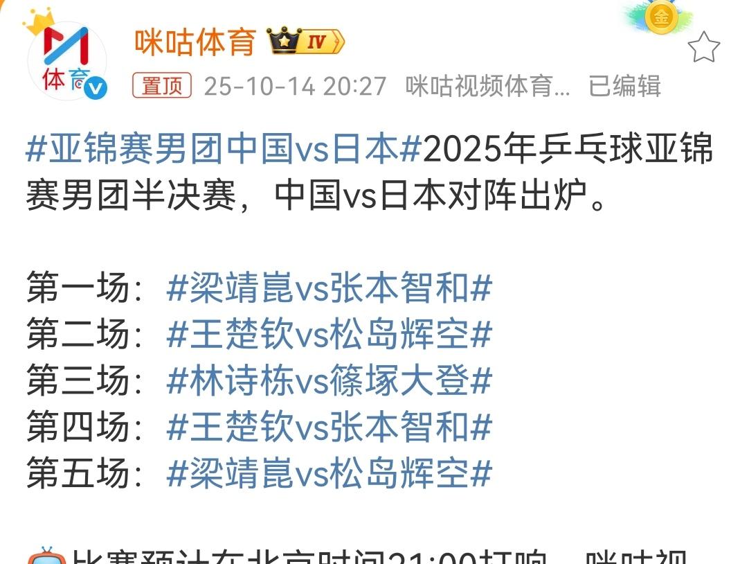 中国0-1日本 亚锦赛男团半决赛,首盘粱靖崑对上张本智和,五局都是2分之差,梁靖
