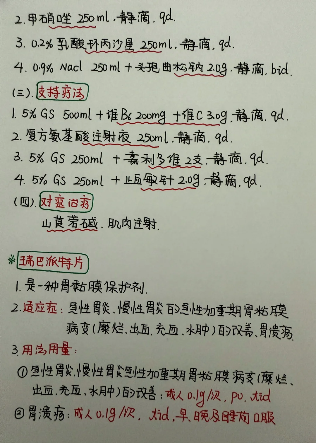 今天为大家分享了急性胃炎最常见的病因、特殊溃疡、表现、检查以及治疗,希望对大家有所帮助💗 ✅瑞巴派特片 1. 是一种胃黏膜保护剂. 2. 适应症:是急性胃炎、慢性胃炎的了急性加重期胃粘膜病变(糜烂、出血、充血、水肿)的改善、胃溃疡. 3. 用法用量: 🔍急性胃炎、慢性胃炎的了急性加重期胃粘膜病变(糜烂、出血、充血、水肿)的改善:成人0.1g/次,口服,每日3次 🔍胃溃疡:成人0.1g/次,每日三次,早、晚及睡前口服