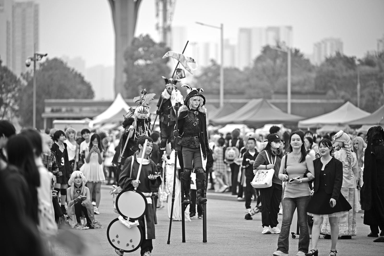 10月1日,中国西部国际博览城人声鼎沸。身着华丽服饰的COSER们从地铁站开始就成为一道流动的风景线:展厅外不少人席地而坐,对着镜子仔细整理着妆容;场馆附近,不少COSER摆出角色动作,等待摄影师捕捉精彩画面。