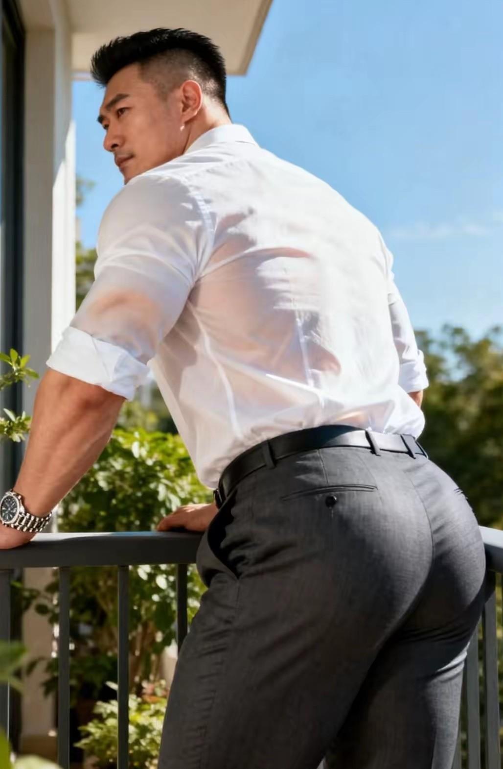 没有一个翘臀,没有饱满结束的胸肌,没有健硕的身材你就别穿正装,一个男人要想穿正装好看,你的身材就很重要,如果你长得像一根电线杆似的,那你干万千万别去穿正装,那样真的不好看,看看这位穿出了男人的魅力所在,前突后翘,把男人的雄壮,健硕,强大展现在你眼前,不光取悦自己,别人也特别喜欢看,说实话碰到这样的男人,你偷看过吗?