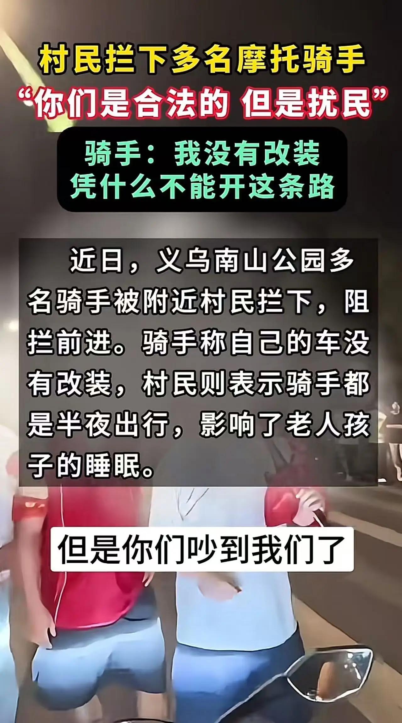 吵翻了!义乌南山公园,多名摩托车骑手深夜“炸街”,被村民拦下不允许通行!骑手理直