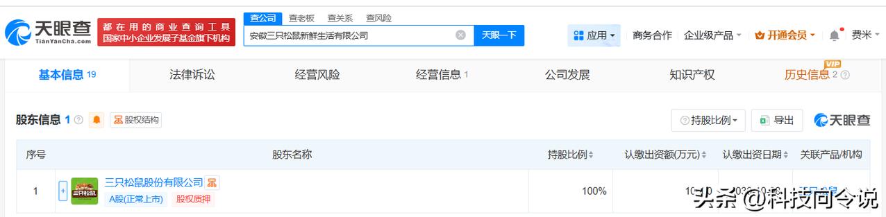 【三只松鼠成立新鲜生活公司注册资本1亿】 天眼查App显示,近日,安徽三只松鼠