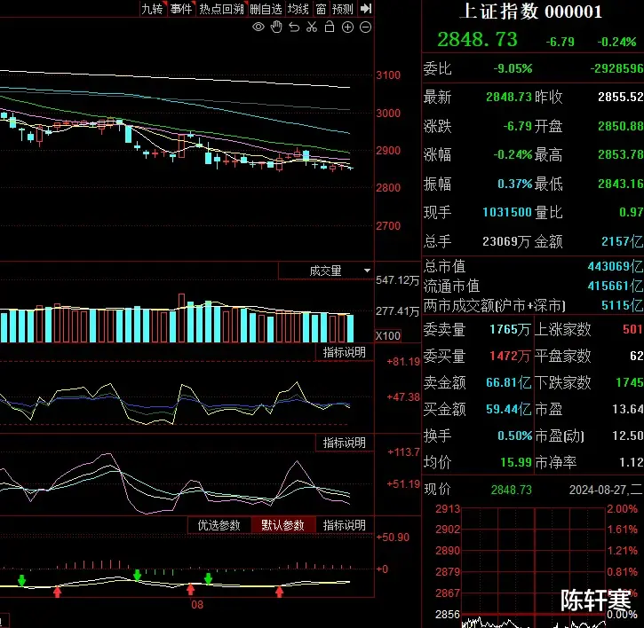 技术上,今日沪指又收星线,昨日阳星,今日阴星,连续5日窄幅震荡星线了,和上次不同,上次是大阳后的调整,这次是中阴后的脚下震荡星线,横不住容易在杀个股阴线的;不过7月23日中阴脚下震荡了5日,是出中阳,这个市场,没有定数,反复无常,下跌趋势,下跌还是主旋律。以前N字震荡上行,第二根突破阳是买点,现在基本是市卖点;下降N也是和以前不同的,第二根阴日或是次日多数构成短线买点。现在的市场和往日大不同,需要换各种思维,一点跟不上就容易吃套。日线kdj指标是继续下行修复,macd指标是反压未死叉,还是低位背离迹象。120分钟kdj指标是反压后再度上行弱多头,macd指标是反压死叉,空头动能很弱,且有背离迹象。60分钟kdj指标反压死叉,试图扭转,macd指标弱多。30、15分钟指标是低位金叉弱多。均线看,短中长全部下行,空头;boll指标看三轨道缩口后空头。下行小通道看,下轨道下移到2810附近。这样看,预计明日还是震荡,提防近期快速回踩通道下轨