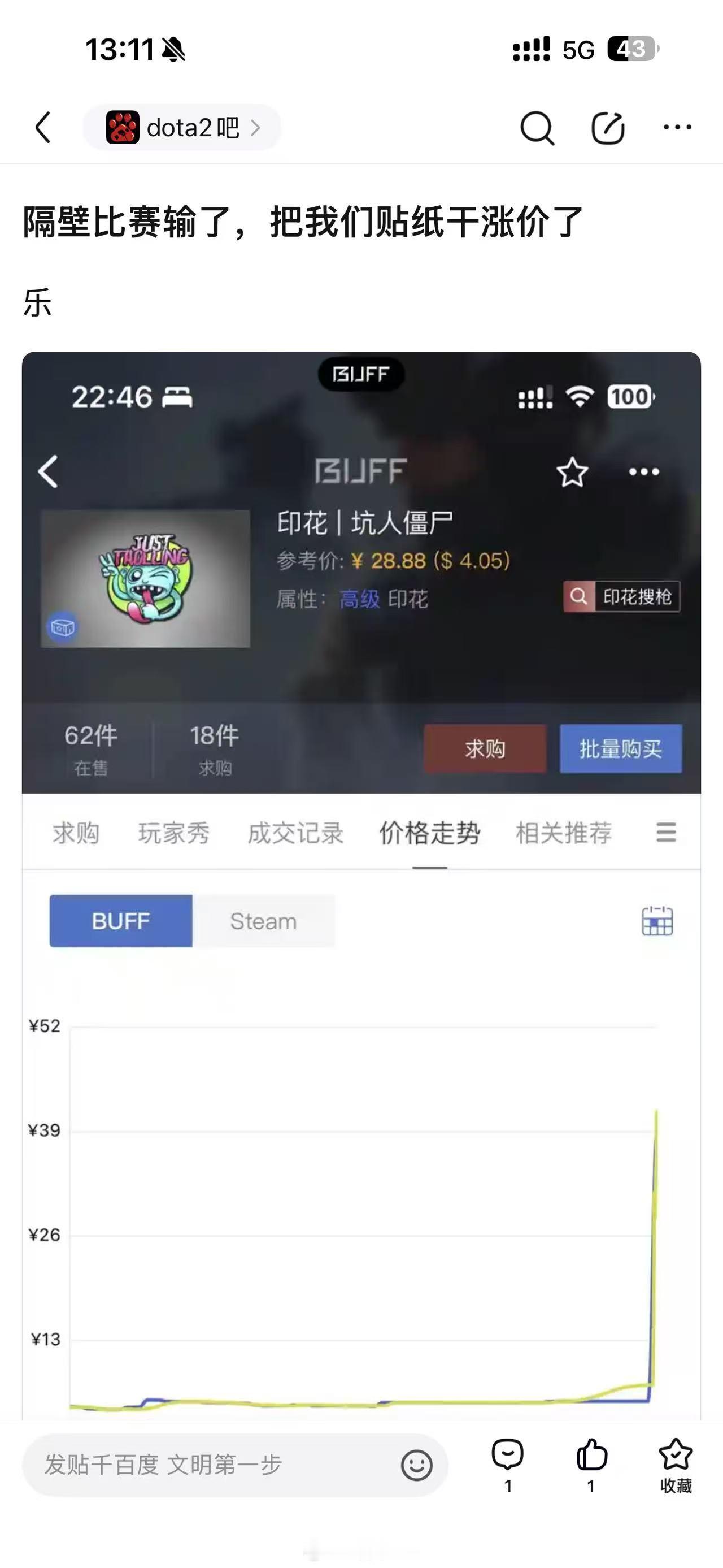 笑死,英雄联盟比赛输了CSGO的贴纸价格都涨了CSGOdoinb怒喷theshy
