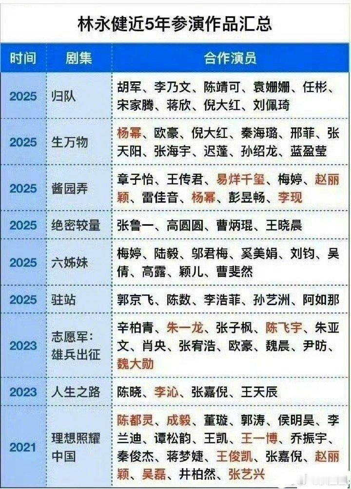 林永健人日发文批某顶流演员排场大 有网友汇总了林永健近五年参演的作品想要找出林永健是在说谁~[吃瓜]